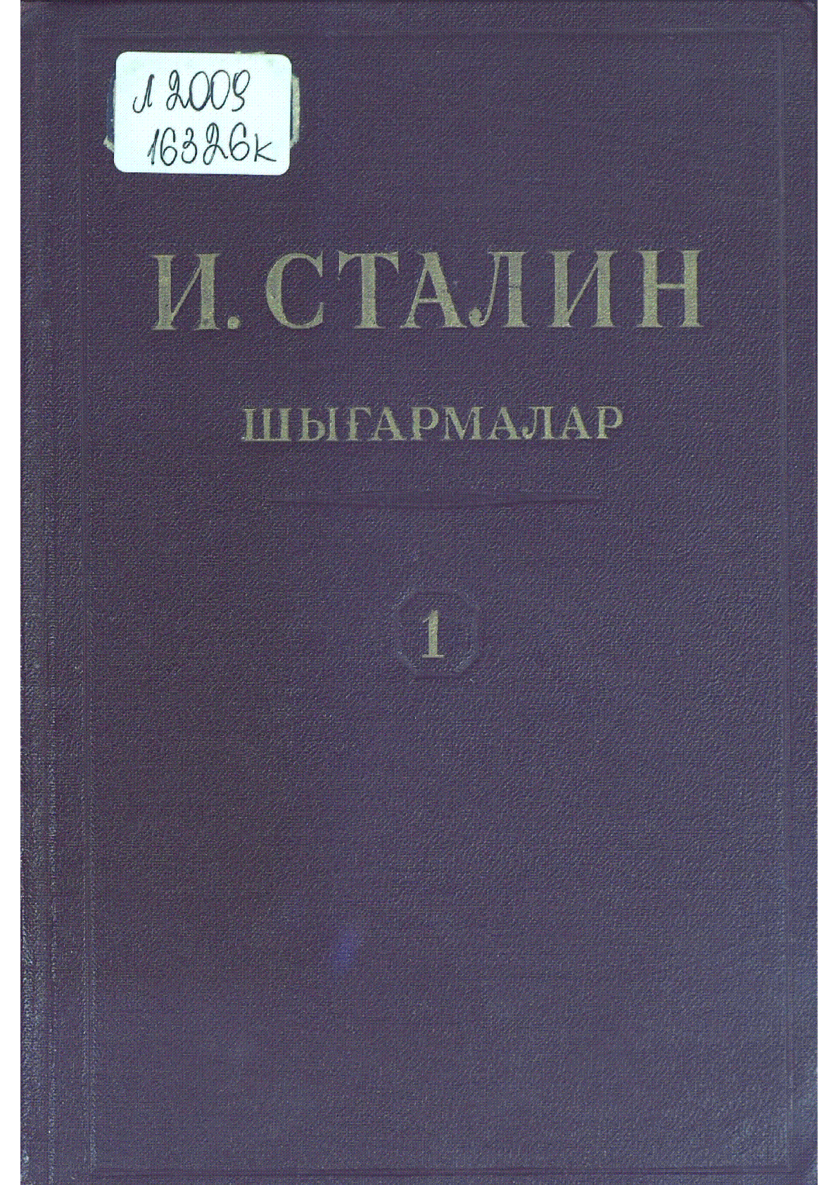 Шығармалар [Мәтін] / И. В. Сталин ; Маркс-Энгельс-Ленин институтының қазақ филиалы .- Алматы : Қазақтың біріккен мемлекет баспасы , 1947.– 50000 дана . (мұқ.) - Хамит Ерғалиев қоры . Т. 1 . 1901-1907– 473 б. (мұқ.) : 500 тг.