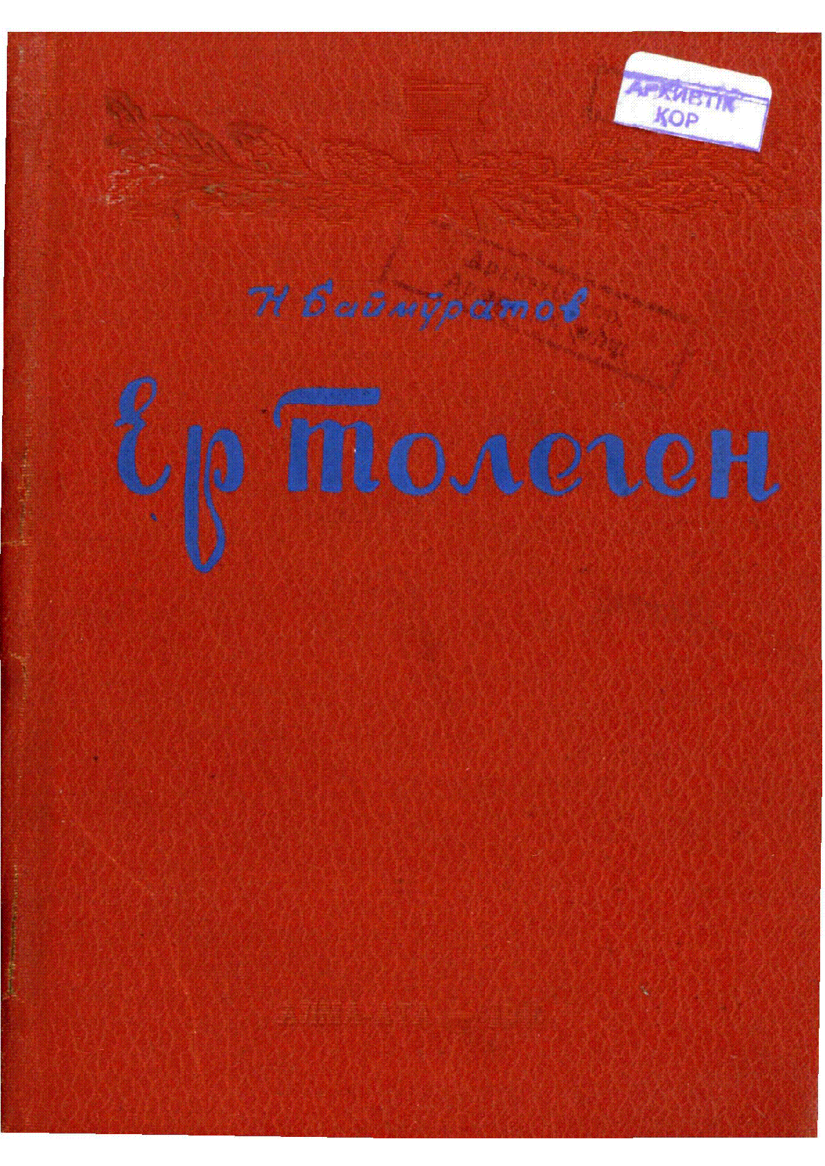 Ер Төлеген [Мәтін] / Н. Баймұратов ... – Алматы : Қазақтың біріккен мемлекет баспасы, 1945. - 77 б. . . – 10000 дана (мұқ.) : 50 тг.