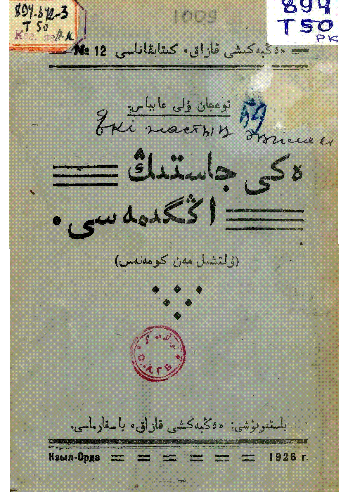 Екі жастың әңгімесі = ه كى جاﺳﺗﯩﯓ اﯖگىمه سى [Мәтін] : ұлтшыл мен коммунист / Тоғжанұлы Ғ. ... – Қызылорда : Қазақстан мемлекет баспасы, 1926. - 69 б. - Араб графикасы. . . – 8 000 дана