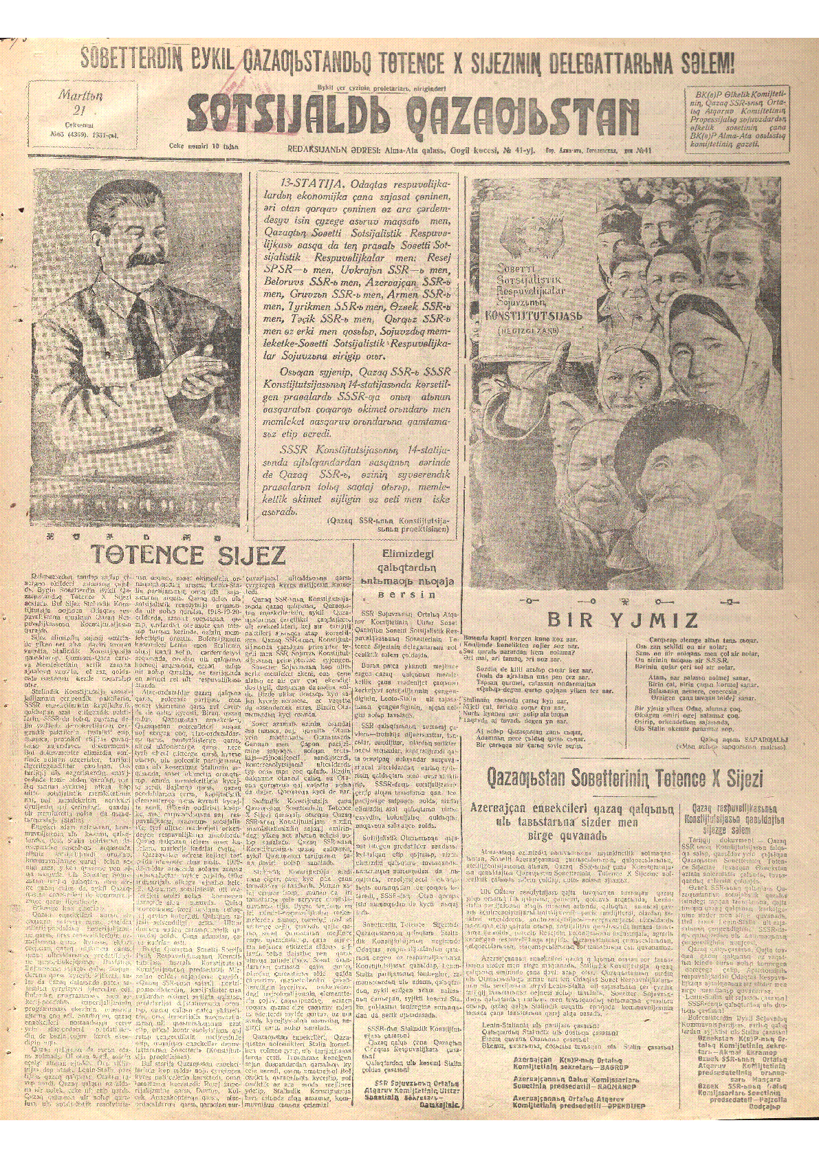 Социалды Қазақстан. 1937 ж. = Sozsialdь Qazaqьstan : 21-март, 1937 ж.. – Алматы : [Казместпром], 1937. - .– [т.ж.]. №65 (4369). - [т.ж.]