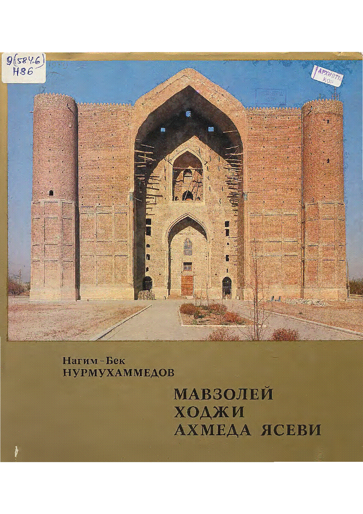 Қожа Ахмед Яссауи мавзолейі = Мовзолей Ходжи Ахмеда Ясеви = The mousoleum of Hodja Ahmed Yasevi [Мәтін] : альбом / Н.-Б. Нұрмұхаммедов ; [ағылшын тіліне аударған К. Кук ; редакторлары: Е. Мекежанов [ж. б.] ; көркемдеген В. Григорьева ; Қазақ ССР министрлігі]... – Алматы : Өнер, 1980. - 36, [160] б., [80] п. сурет; - Мәтін қазақ, орыс, ағылшын тілдерінде . – Жинақта қазақ халқының байырғы мәдениетінің тарихында айрықша орны бар ұлы ақын, сопылық поэзияның негізін салушы, күллі күншығыс мұсылмандарының рухани ұстазы болған ұлы ойшыл, діни қайраткері Қ. А. Яссауи мавзолейінің тарихы, тыныс-тіршілігі суреттелген . – 20000 дана (мұқ.) : 0 тг.