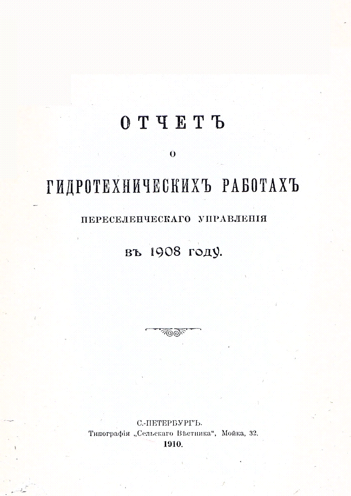 Отчет о гидротехнических работах переселенческого управления в 1908 году [Текст] / ... – Санкт-Петербург : Тип. "Сельского вестника", 1910. - 26 с. - Текст на старорус. яз. . . – [б. т.] : 10 тг.