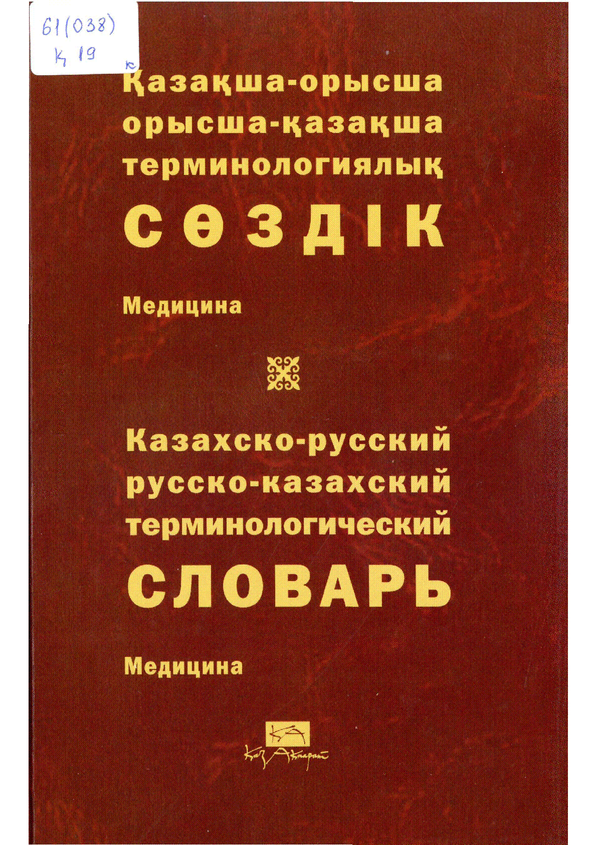 Қазақша-орысша, орысша-қазақша терминологиялық сөздік [Мәтін] - Астана : ҚАЗақпарат , 2014.– 4000 дана . – 978-601-03-0301-0 - Қаз., орыс тіл. . 14-том . Медицина : 12000-ға жуық термин– 532 бет