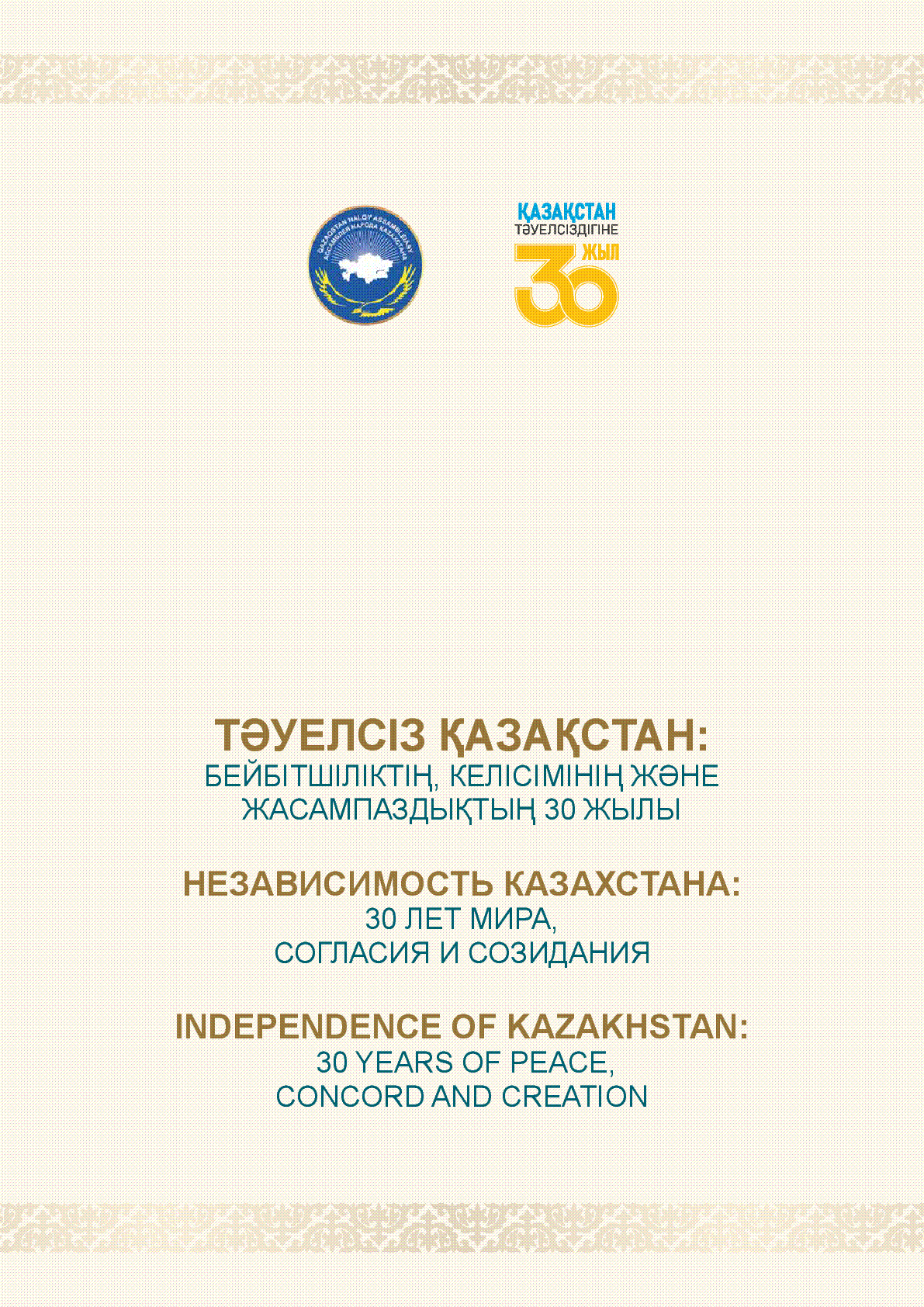 Тәуелсіз Қазақстан: бейбітшіліктің, келісімнің және жасампаздықтың 30 жылы = Независимость Казахстана: 30 лет мира, согласия и созидания = Independence of Kazakhstan: 30 years of Peace, Concord and Creation [Мәтін] / Ж. Түймебаев ... – Алматы : Алтын кітап, 2021. - 317, [2] б., суретті; - Қазақстан Республикасы Мәдениет және спорт министрлігі "Мәдениет және өнер саласындағы бәсекелестікті жоғарылату, қазақстандық мәдени мұраны сақтау, зерделеу мен насихаттау және архив ісінің іске асырылу тиімділігін арттыру" бағдарламасы "Қазақстан Республикасының Ұлттық қорынан берілетін нысаналы трансферт есебінен әдебиеттің әлеуметтік маңызды түрлерін сатып алу, басып шығару және тарату" кіші бағдарламасы бойынша жарық көрді. - Мәтін қаз., орыс, ағылш. тілд. . . – 3000 дана – 978-601-06-8018-0 (мұқ.) : 8970 тг.