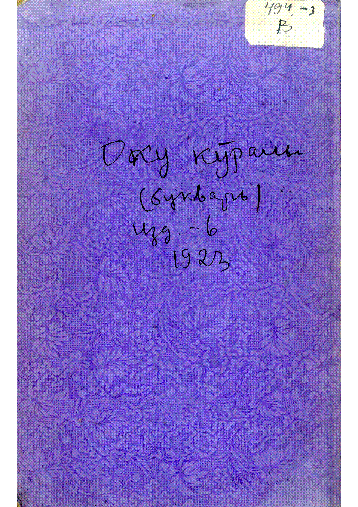 Оқу құралы = Оку коралы = اوقۋ قۇرالى [Мәтін] , : қазақша әліппе / А. Байтұрсынов . – 6-бас. .. – Орынбор : Қазақ мемлекет баспасы, 1923. - 73 б. 24,5х16,5 см - Мәтін араб графикасымен жазылған . .
