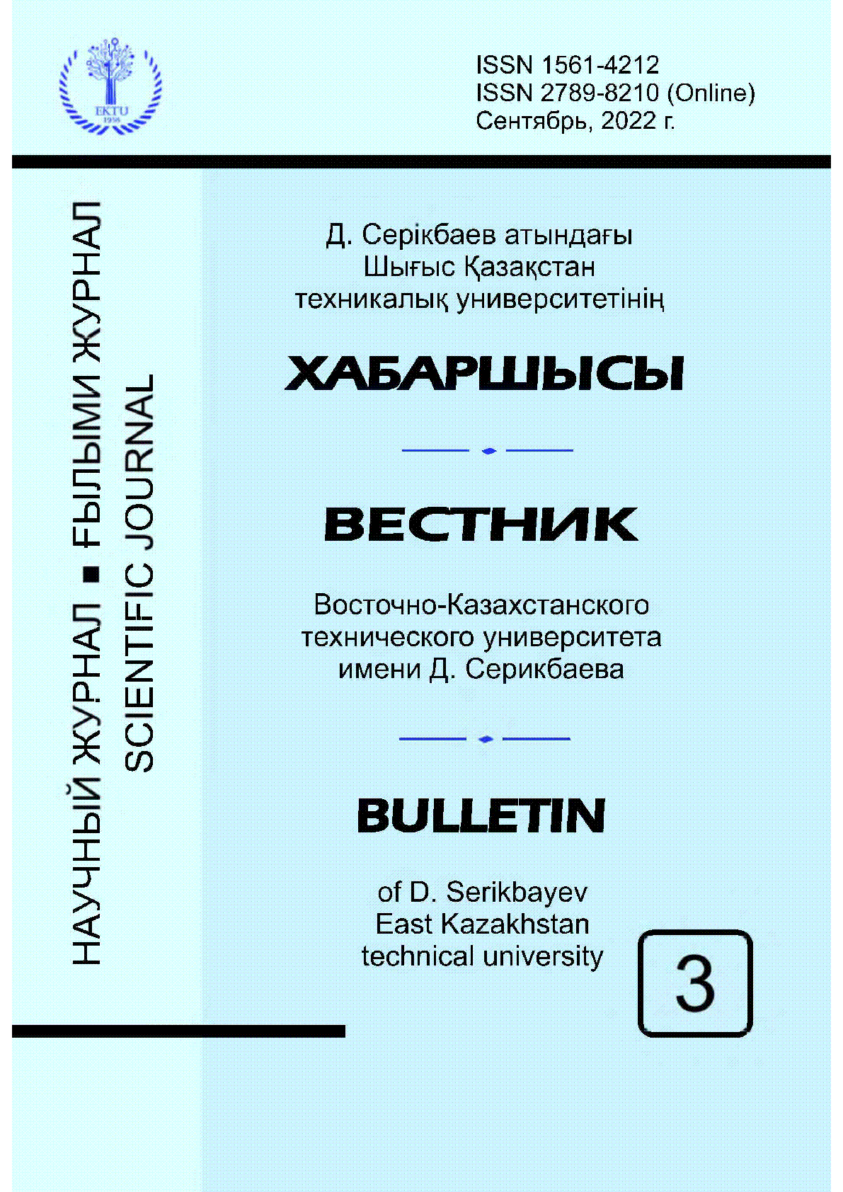Д. Серікбаев атындағы Шығыс Қазақстан техникалық университетінің хабаршысы = Вестник Восточно-Казахстанского государственного технического университета им. Д. Серикбаева = Bulletin of East Kazakhstan State Technical University named after. D. Serikbaeva [Мәтін] : ғылыми журнал. – Өскемен : [б. ж.], 2022. - .– 50 дана., – Жылына 4 рет шығады. – ISSN 1561-4212 ., – ISBN 2789-8210 (Online). 2022, № 3. - 50 дана,