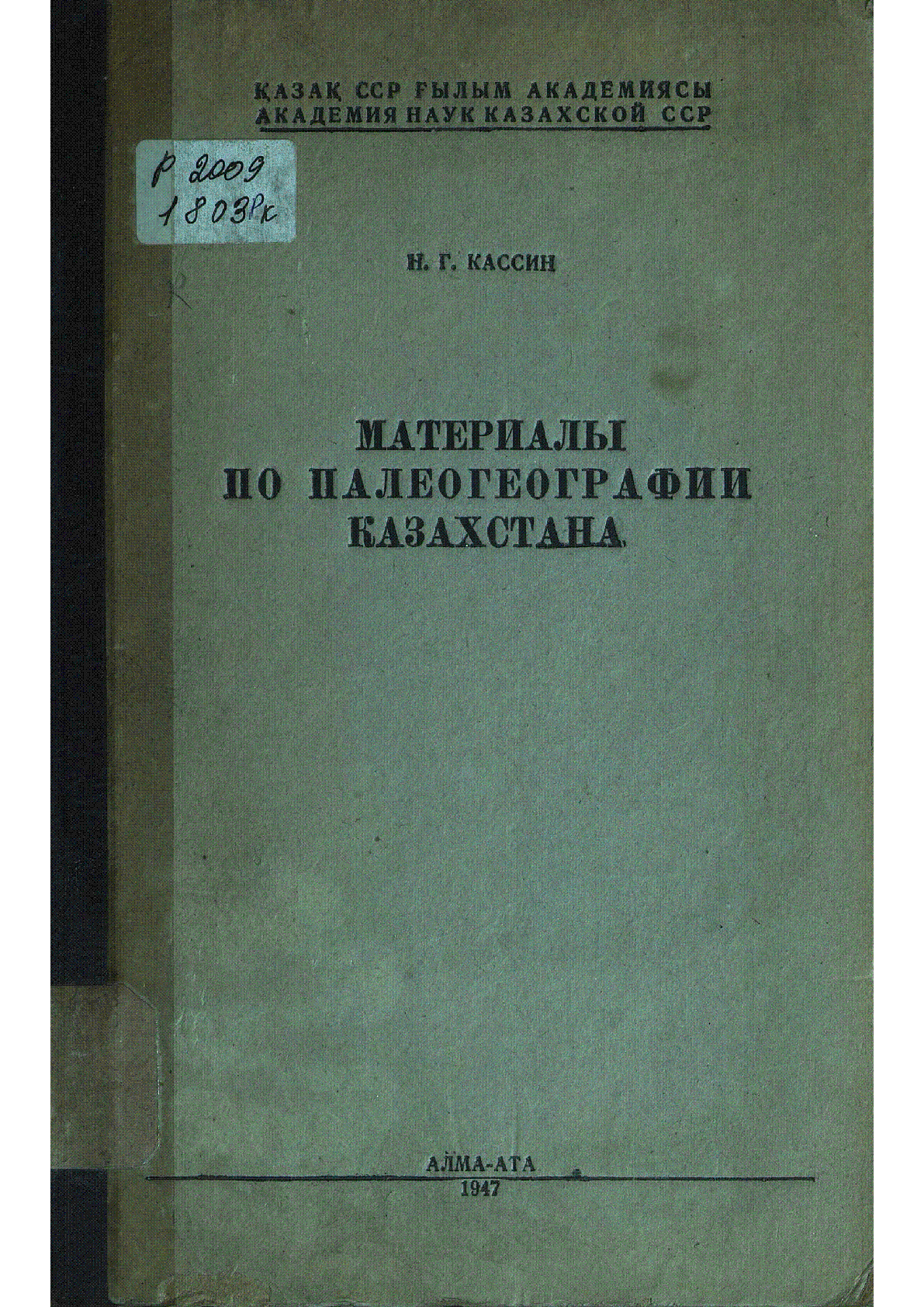 Материалы по палеогеографии Казахстана [Текст] : (С 34 палеогеографическими схемами) / Н. Г. Кассин ; Академия наук Казахской ССР, Институт геологических наук... – Алма-Ата : Изд-во Академии наук КазССР, 1947. - 255, [2] с., карта;+ прил. (12 табл.) . . . – 3000 экз. (в пер.) : 500 тг.