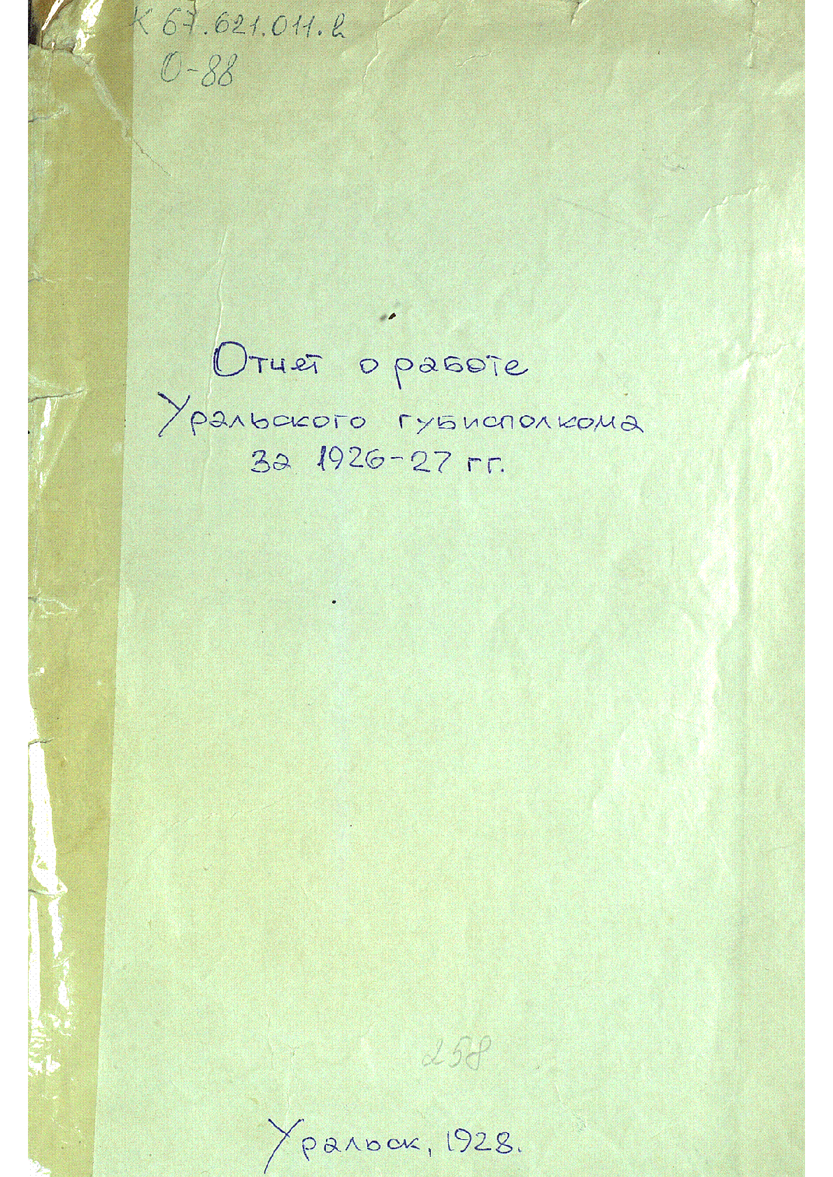 Отчет о работе Уральского губисполкома за 1926-27 гг. [Текст] / ... – Уральск : [Б. и.], 1928. - 119 с., ил., табл.; . .
