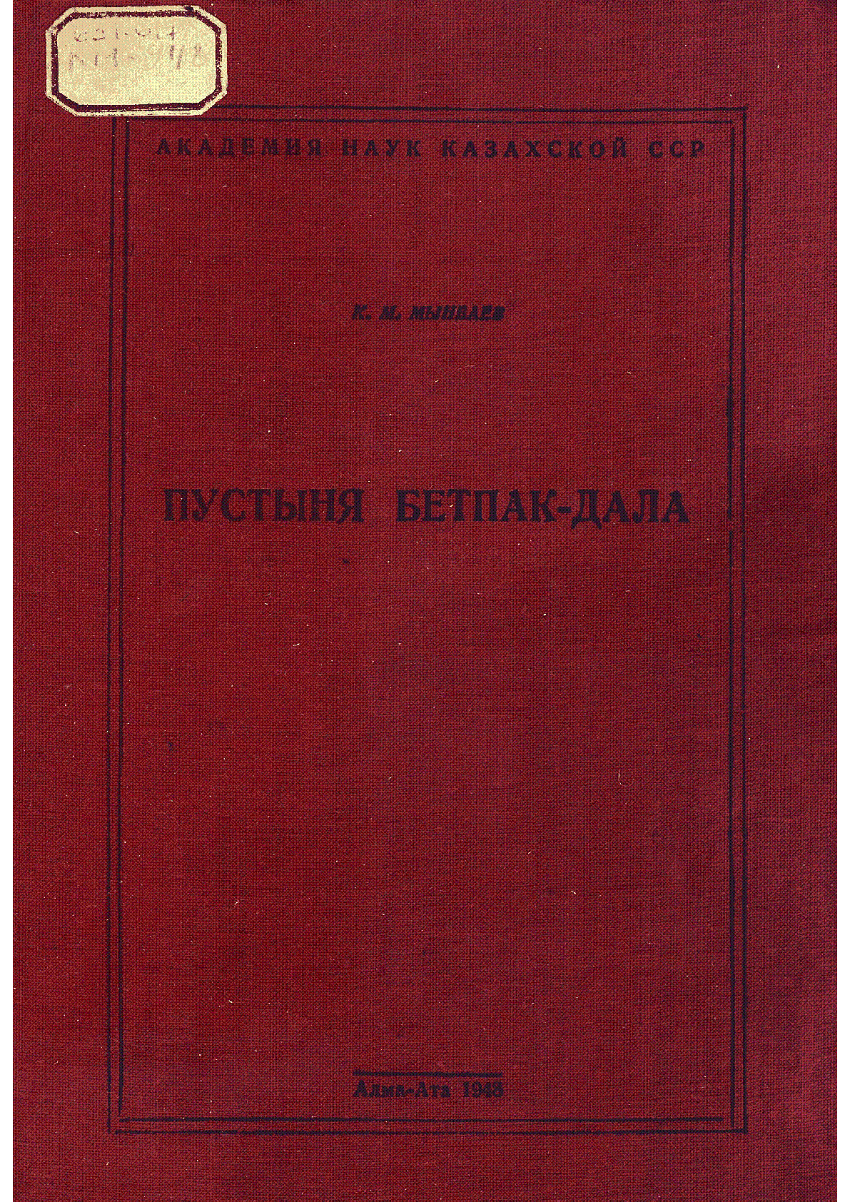 Пустыня Бетпак-дала [Текст] / К. М. Мынбаев ; Академия наук Казахской ССР... – Алма-Ата : Изд-во АН КазССР, 1948. - 96, [2] с., [1] л. прил.; . . – 1000 экз.