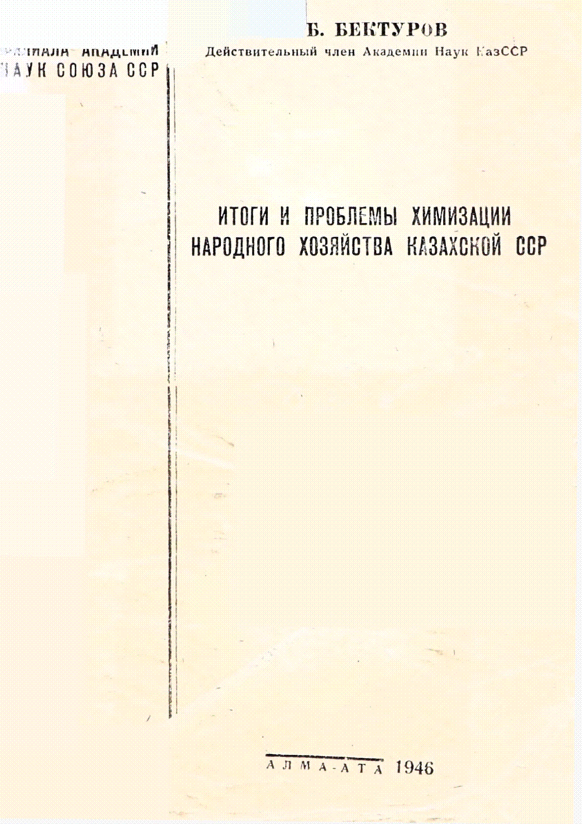Итоги и проблемы химизации народного хозяйства Казахской ССР [Текст] / А. Б. Бектуров ; Акад. наук Каз. ССР... – Алма-Ата : Акад. наук КазССР, 1946. - 16 с. . . – 100 экз. : 50 тг.