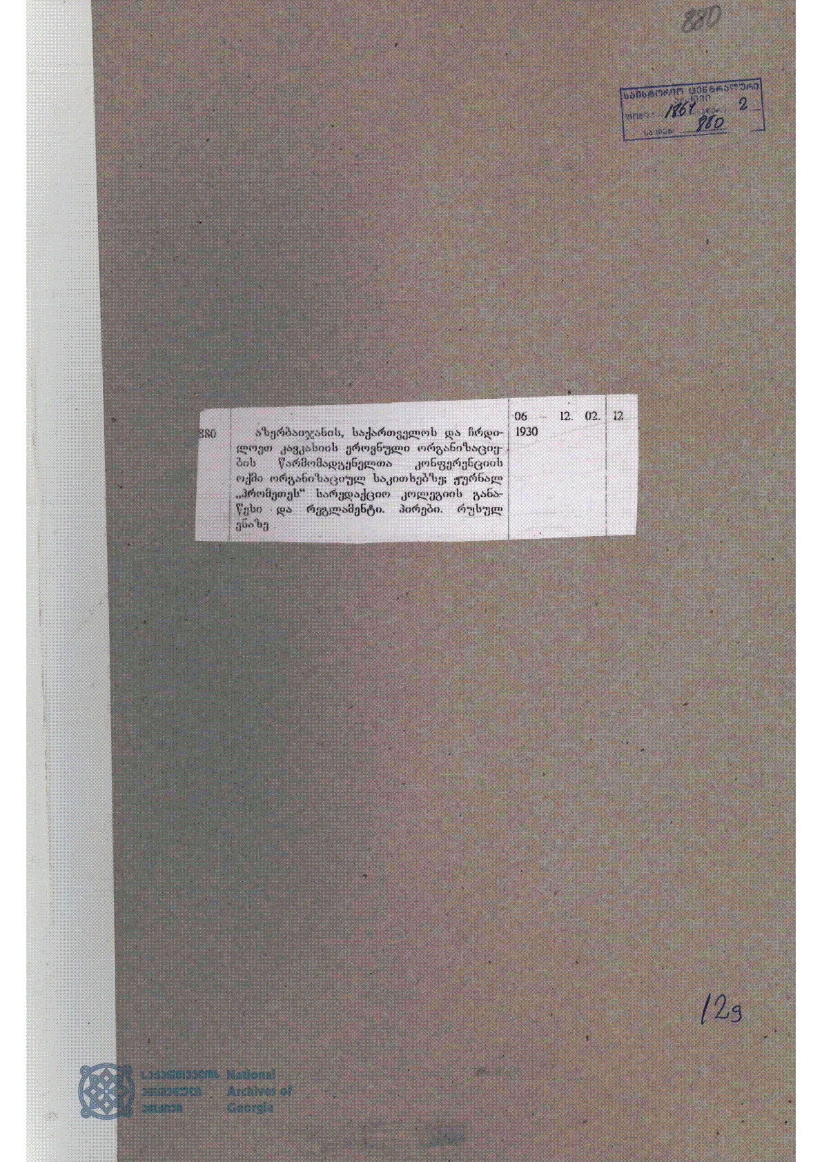 Протокол Конференций представителей национальных организации Азербайджана, Грузии и Северного Кавказа [Текст] : 6-12 февраля 1930 г. / ; Представители национальных организации Азербайджана, Грузии и Северного Кавказа... – [Б. м. и.] : [б. и.], [1930]. - 12 c. - Источники из Национального архива Грузии . . – [б. т.]