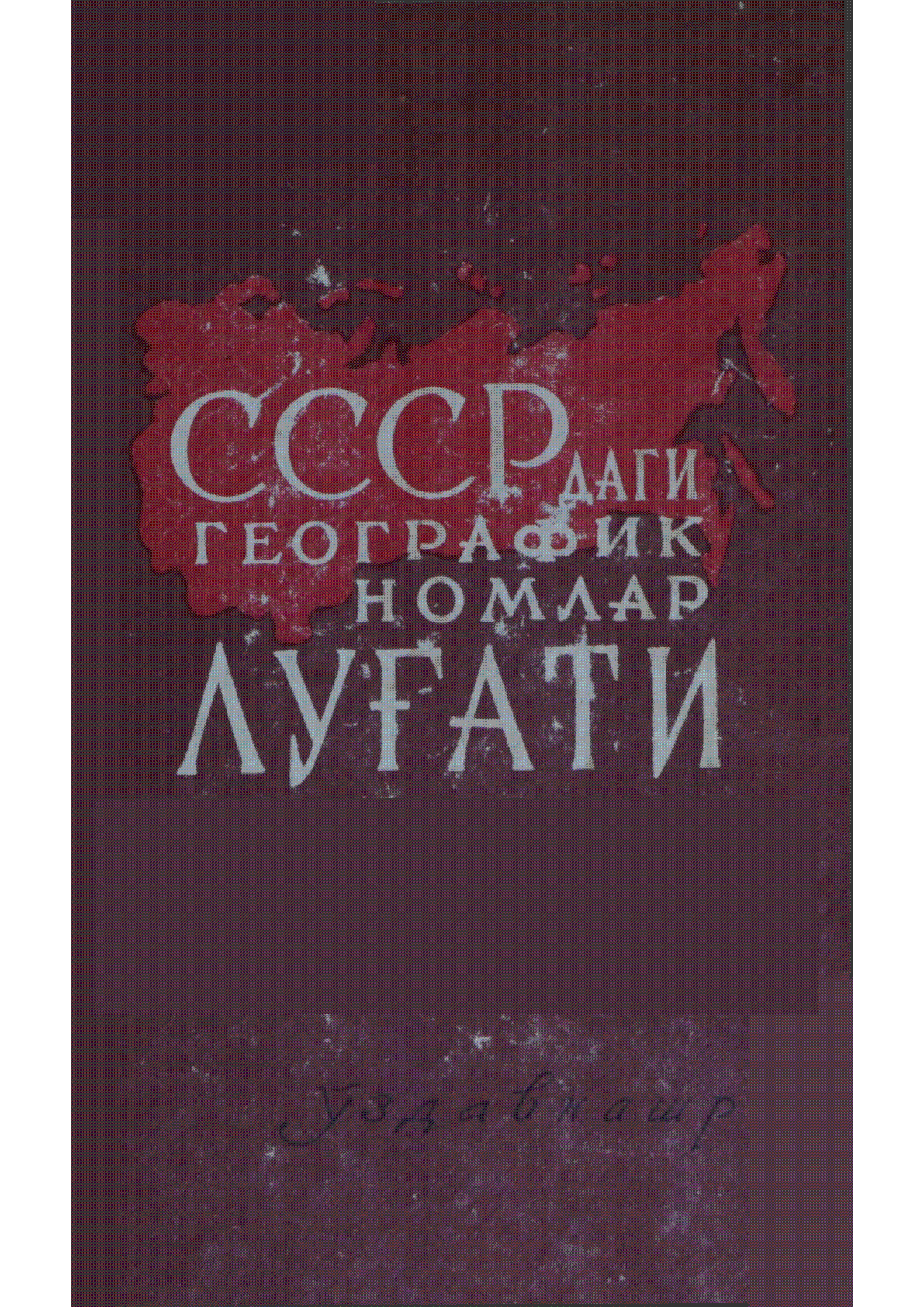 СССР даги географик номлар луғати [Text] : (русча-ўзбекча) / ; Ўзбекистон ССР давлат нашриёти ; [тузувчилар: С. Қораев, М. Тешабоев ; махсус ред. М. Қориев]... – Тошкент : Узбекистон ССР Давлат Нашриёти, 1964. - 277, [2] с. - Шора Сарыбаев қоры . – Изоҳда библиогр. . – 7000 дана (мұқ.) : 0 тг.