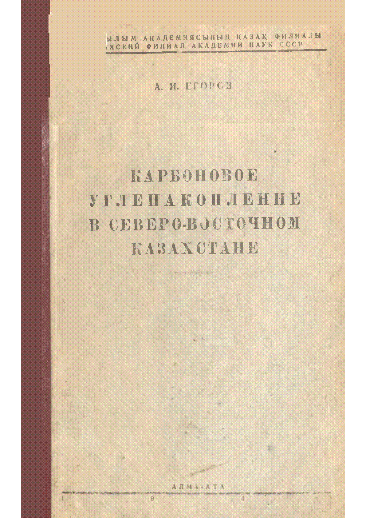 Карбоновое угленакопление в Северо-Восточном Казахстане [Текст] / А. И. Егоров ; [отв. ред. Н. Г. Кассин] ; Каз. филиал акад. наук СССР ; Ин-т геол. наук... – Алма-Ата : Издательство Казахского филиала Академии наук СССР, 1945. - 179 с. . – Библиогр.: с. 170-177 . – 750 экз.