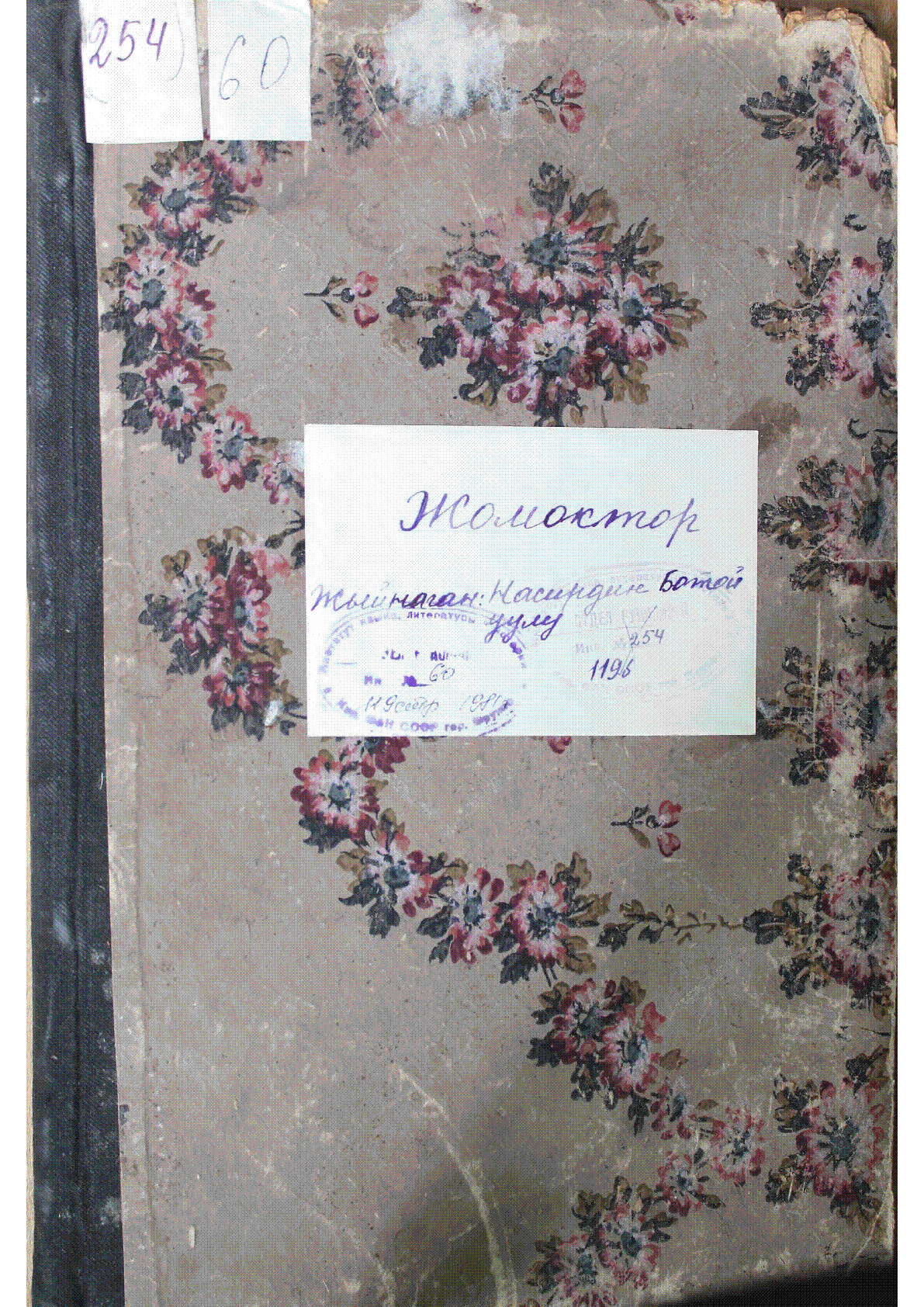 Жоо жомоктор [Manuscript] / Насирдин Ботой уулу ; жыйнаган Насирдин Ботой уулу... – Фрунзе : [б. ж.], 1927. - [119] б. - Қолжазба көк және қызыл сиямен жазылған. - Мәтін латын қарпымен қырғыз тілінде . . – [т. ж.]