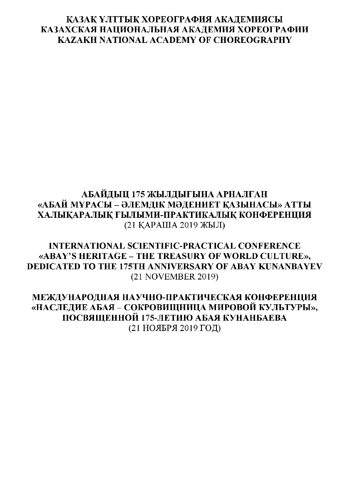 Толысбаева, Ж. Ж. «Ғақлия» Абая как объект подражания Б. Канапьянова [Текст] / Ж. Ж. Толысбаева // Абай мұрасы – әлемдік мәдениет қазынасы. - 2019. - Нұр-Сұлтан. – С. 74-80. ISSN<br>