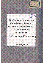 Ақмола округтік партия комитеті мен бақылау комиссиясының біріккен ІІІ-пленумының қаулылары = اقمولا وكىرىكتىك پارتىيا كامىيتەتى مەن باقىلاۋ كامەسىيەسىنىڭ بىرىككەن 3 پىلەنۇمىنىڭ قاۋلىلارى [Мәтін] : (15-22 январь 1930 жыл) / ... – Ақмола : Тип. "Спутник революции", 1930. - 43 б.– (Ақмоланың округтік партия комитеті. - Мәтін араб графикасымен жазылған. . . : 800 дана
