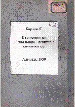 Қазақстанның 10 жылында лениншіл комсомолдар [Мәтін] / Борзов Л. ... – Алматы : Қазақстан 10 жылдық тойын өткізуші комиссия баспасы, 1930. - 46 бет– (Автономиялы Қазақ Республикасының 10 жылдығына. - Араб графикасы. . . – 10000 дана