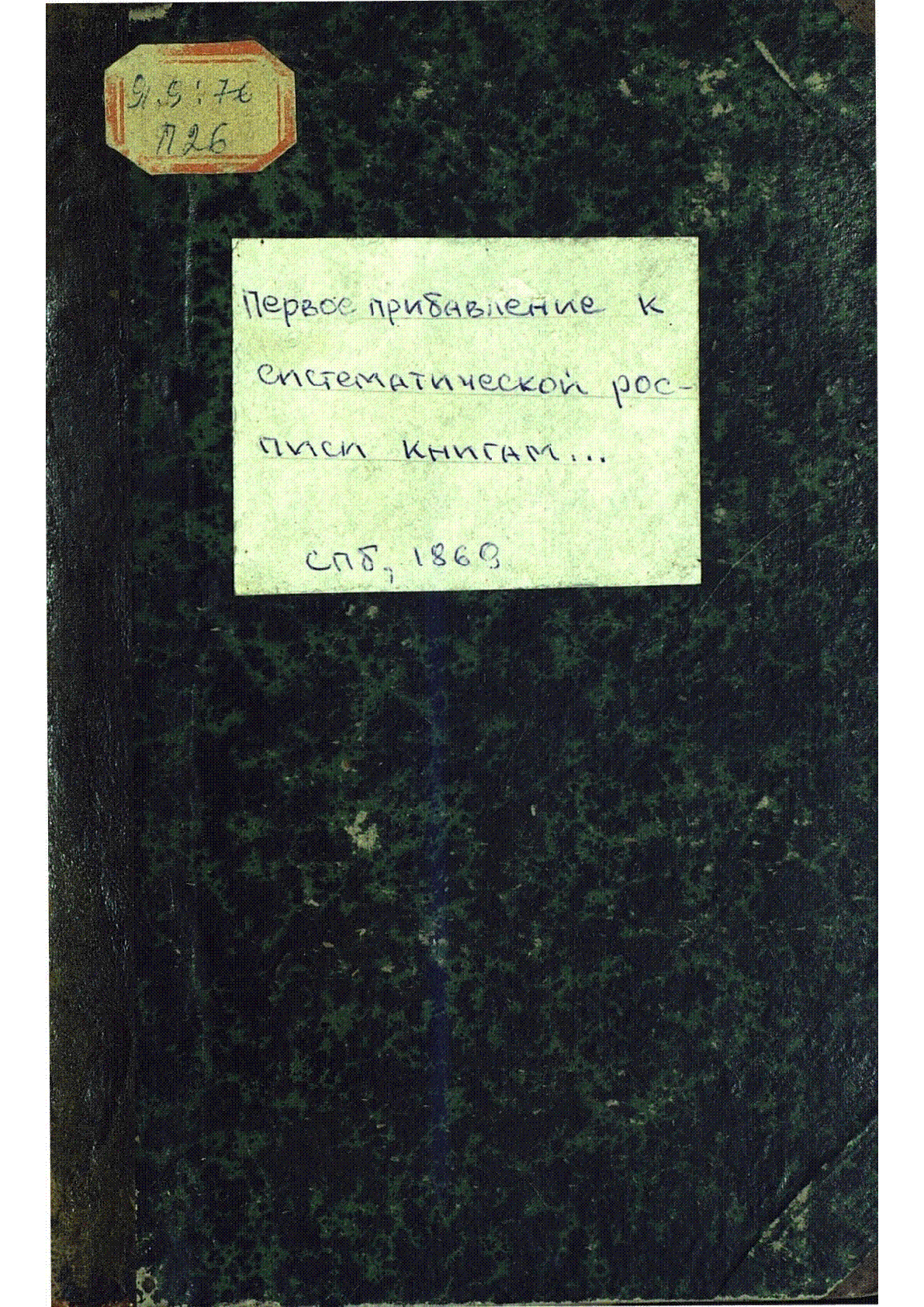 Первое прибавление к систематической росписи книгам, продающимся в книжном магазине Александра Ильича Глазунова [Текст] : в Москве, на Кузнецком мосту в доме Торлецкого / ... – СПб. : Типография И. И. Глазунова, 1869. - XXIV, 184 с. . .
