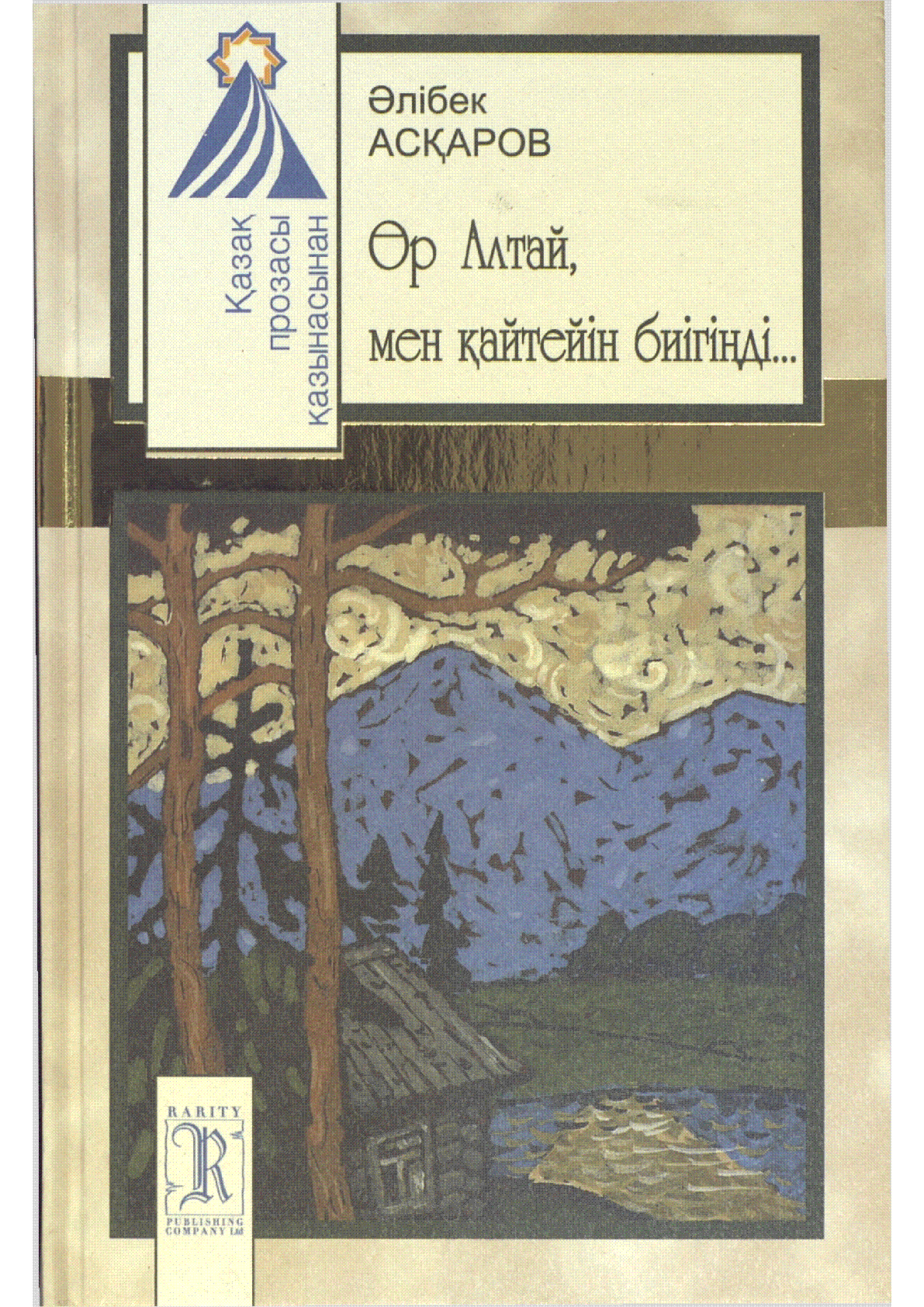 Өр Алтай, мен қайтейін биігіңді... [Мәтін] : хикаят / Ә. Асқаров ... – Алматы : Раритет, 2006. - 310, [2] б.– (Қазақ прозасы қазынасынан. : 2002 жылдан бастап шығарылып келеді- Қазақстан Республикасы Мәдениет және ақпарат министрлігі, Ақпарат және мұрағат комитеті бағдарламасы бойынша шығарылған . . – 2000 дана – ISBN 9965-770-08-5 (мұқ.) : 40 тг.