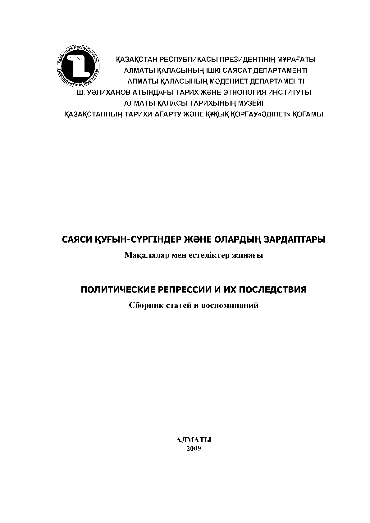 Политические репрессии и их последствия : сб. статей и воспоминаний / ... – Алматы : [Б. и.], 2009. - 158 с. . . – 9965-32-870-6