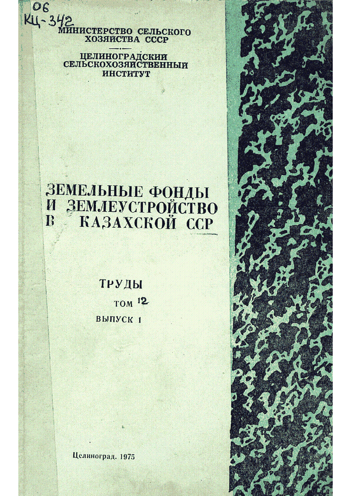 Земельные фонды и землеустройство в Казахской ССР [Текст] / ; Целиноградский сельскохозяйственный институт, Министерство сельского хозяйства СССР ; [редколлегия: М. А. Гендельман (ответственный редактор) [и др.]]... – Целиноград [Астана] : [б. и.], 1975. - 120 с., ил., табл.;– (Труды Целиноградского сельскохозяйственного института. ; Т. 12, вып. 1 . . – 1000 экз. : 3 тг.