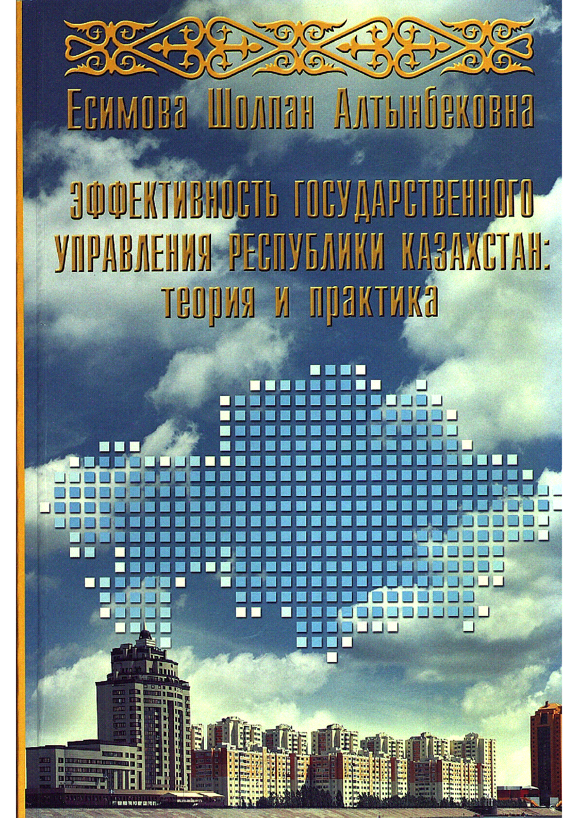 Эффективность системы государственного управления Республики Казахстан: теория и практика : монография / Есимова, Шолпан Алтынбековна ... – Хмельницький : [Б. и.], 2008. - 357 с. . – Библиогр.: С. 345-357 . – 978-966-8823-19-0