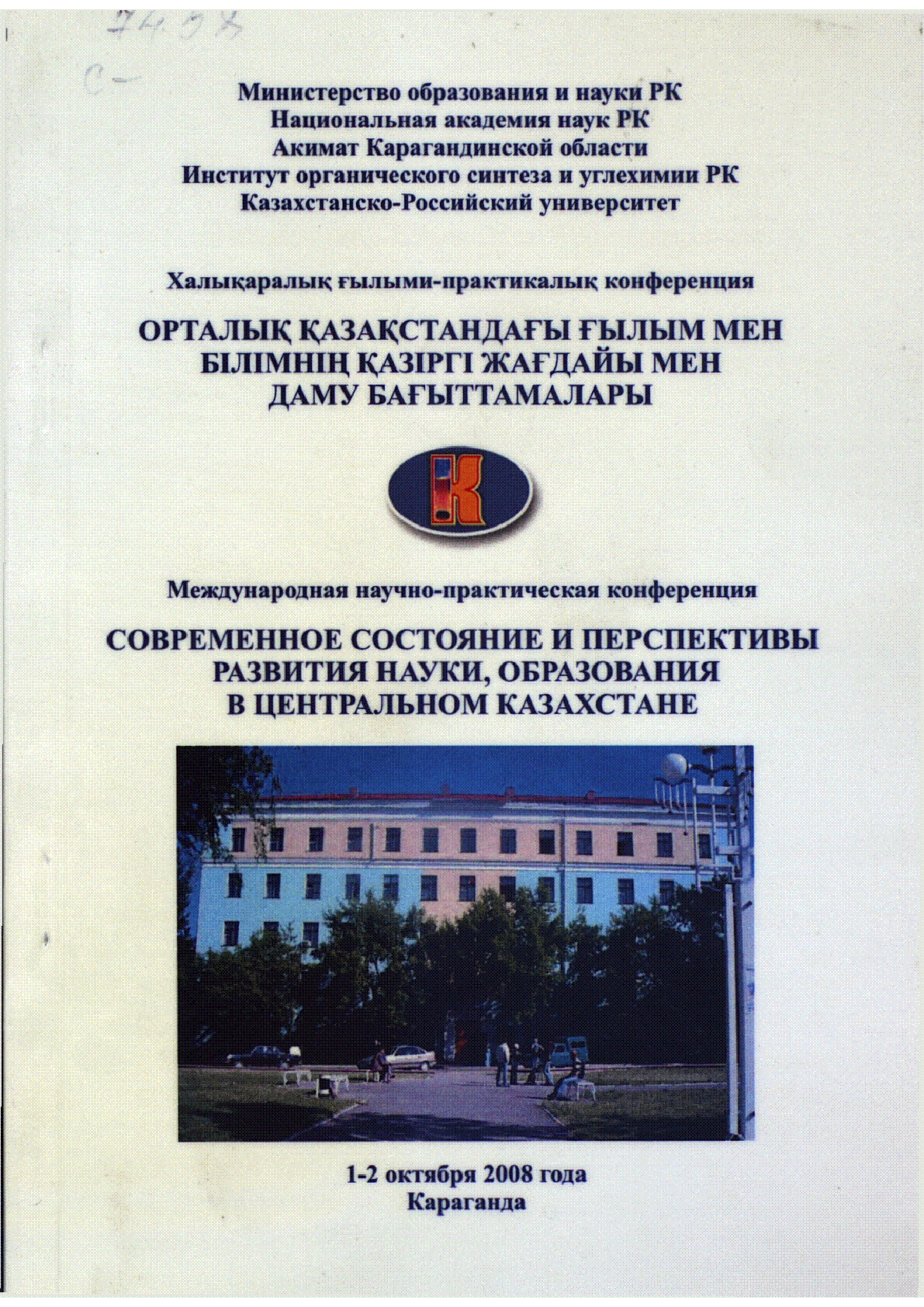Современное состояние и перспективы развития науки, образования в Центральном Казахстане / ; Акимат Карагандинской области ; Институт органического синтеза и углехимии РК, Казахстанско-Российский университет... – Караганда : [Б. ж.], 2008. - 96 с. . . – не указан