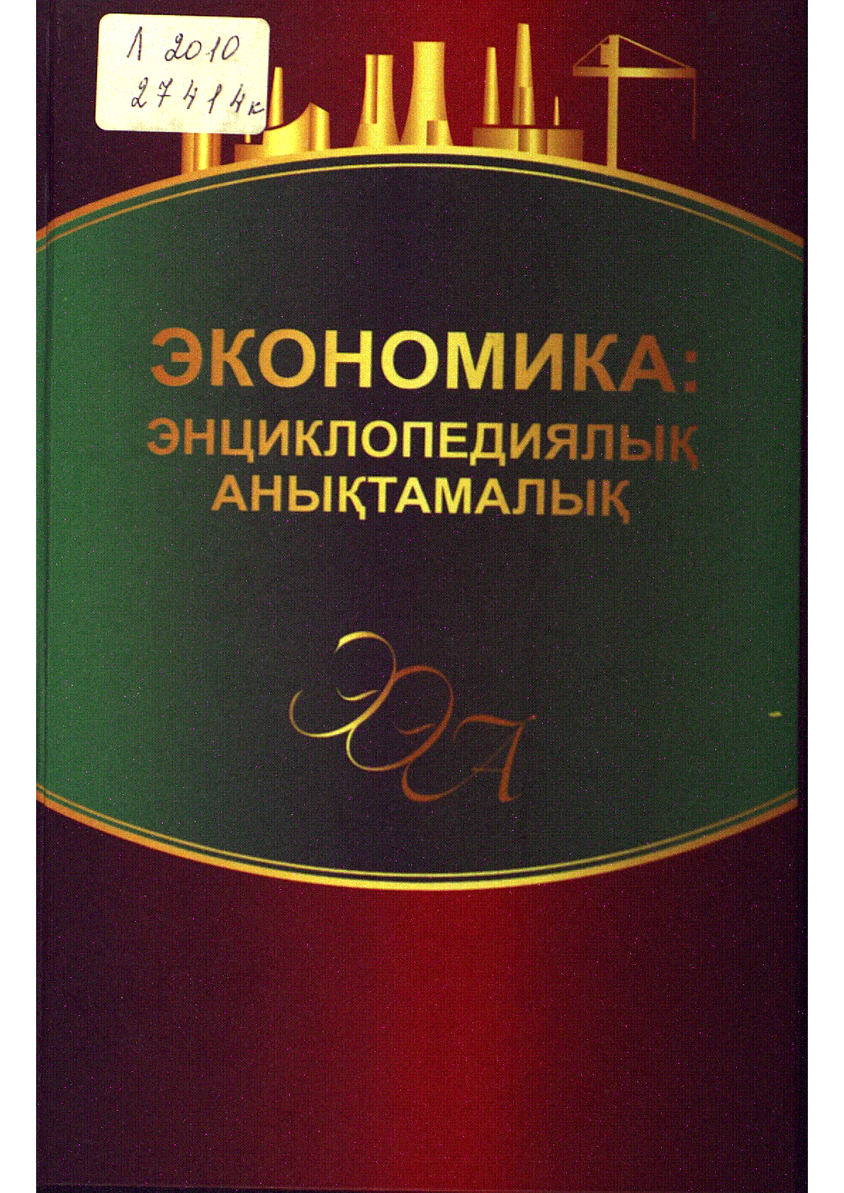 Экономика: энциклопедиялық анықтамалық [Мәтін] : 3 700 термин / Сәбден, Оразалы Тоқсанбай, Сүлеймен ... – Алматы : Таймас, 2010. - 799 б. - Қазақстан Республикасы Байланыс және ақпарат министрлігі ; Ақпарат және мұрағат комитеті "Әдебиеттің әлеуметтік маңызды түрлерін басып шығару"бағдарламасы бойынша . – Библиогр.: 797-798 б. . – 978-601-264-005-2 (мұқ.)