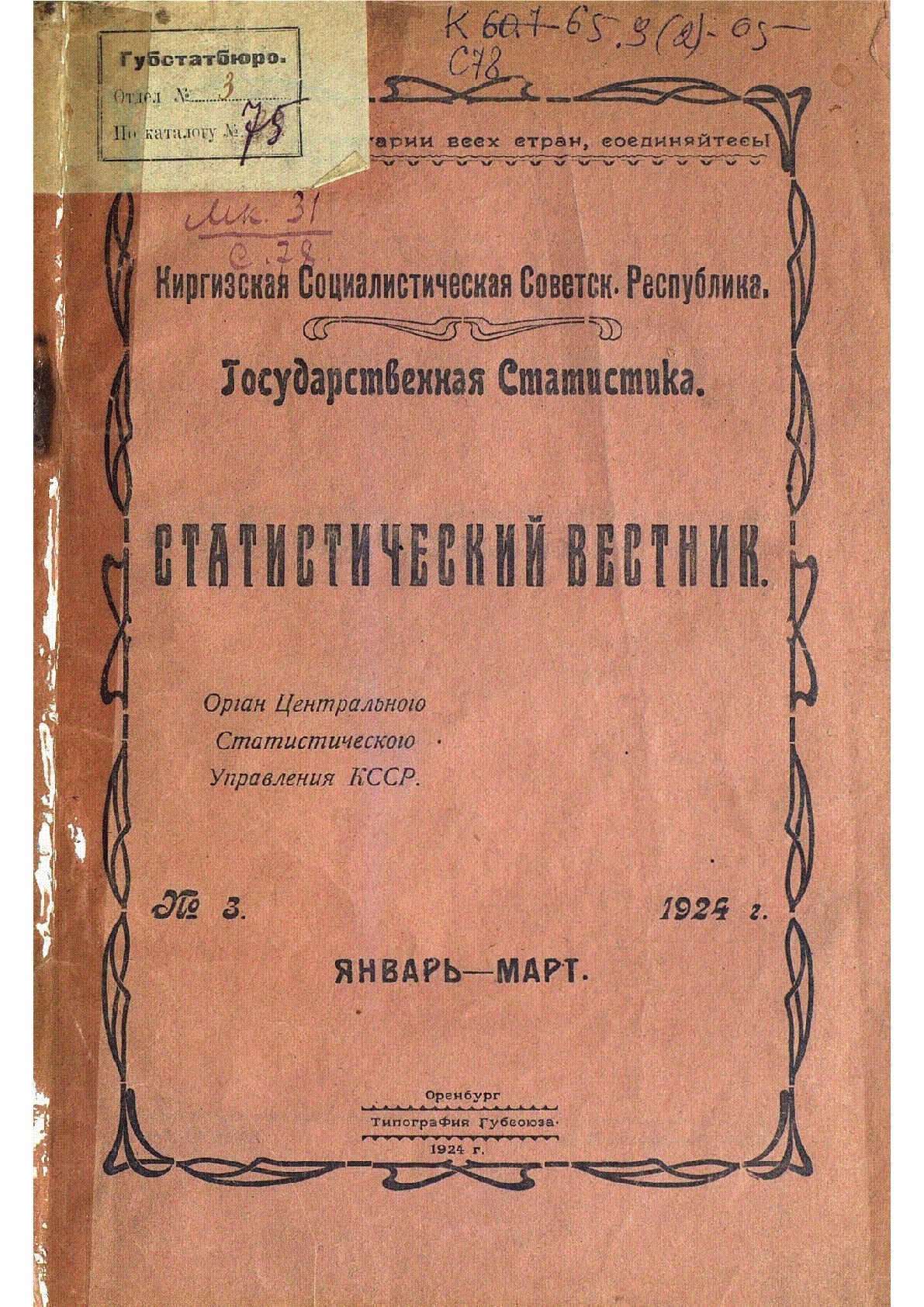 Статистический вестник [Текст] : орган Центрального Статистического Управления КССР / ... – Оренбург : Типография Губсоюза, 1924. - 133 с., ил., табл.; . . – 400 экз. : 20 тг.