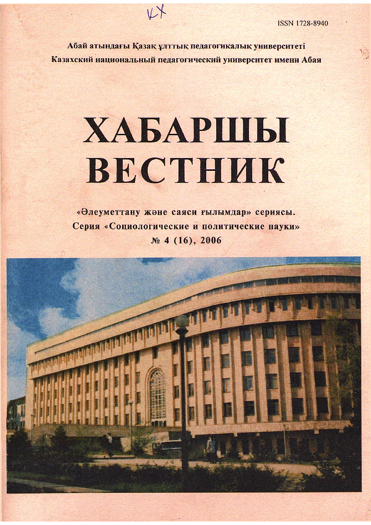 Хабаршы. "Әлеуметтану және саяси ғалымдар" сериясы / Абай атындағы Қазақ ұлттық педагогикалық университеті ; гл. ред. Р.Б.Абсаттаров. – Алматы : КазНПУ им.Абая, 2006.-№4. -
