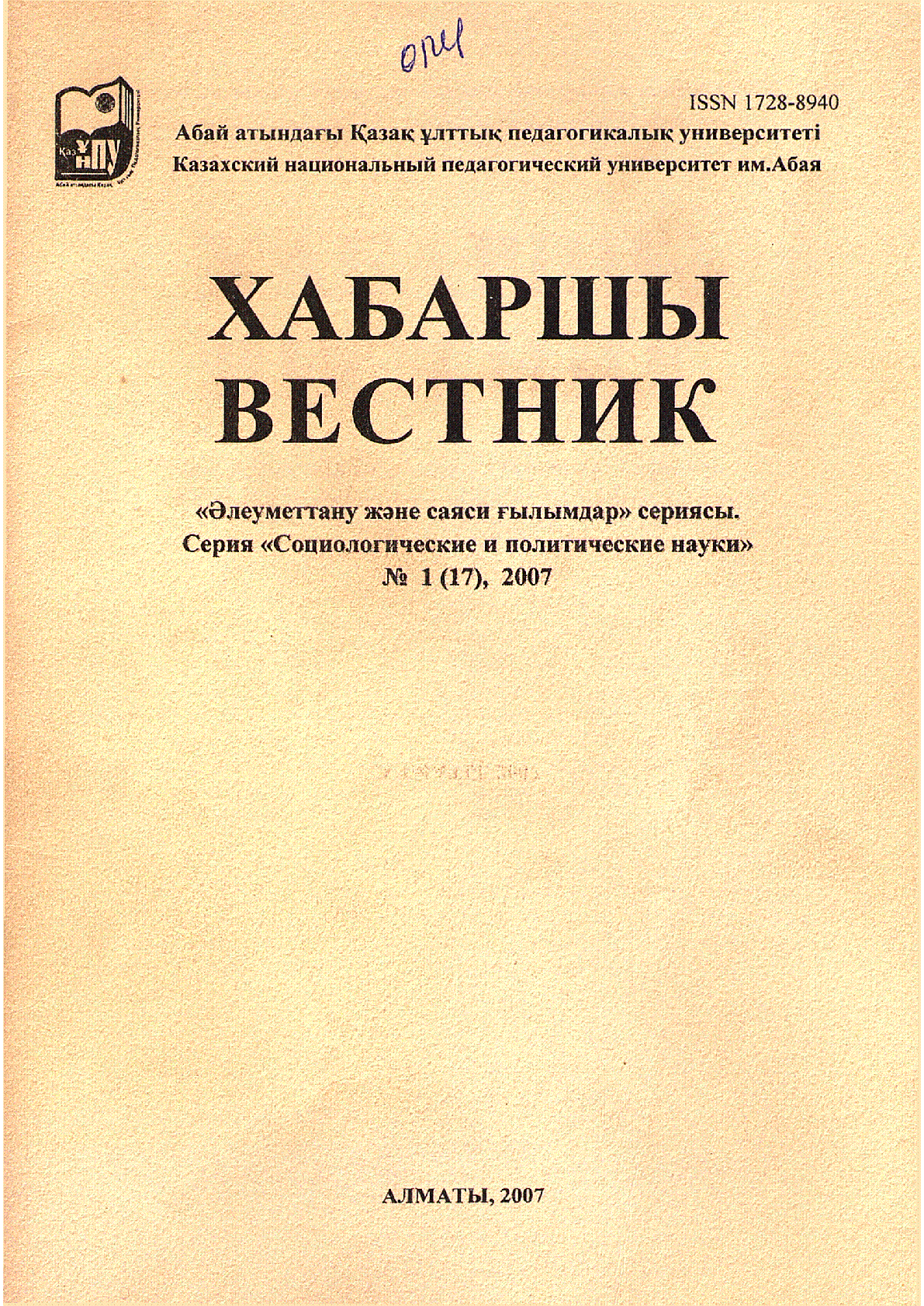 Хабаршы. "Әлеуметтану және саяси ғалымдар" сериясы / Абай атындағы Қазақ ұлттық педагогикалық университеті ; гл. ред. Р.Б.Абсаттаров. – Алматы : КазНПУ им.Абая, 2007.-№1. -