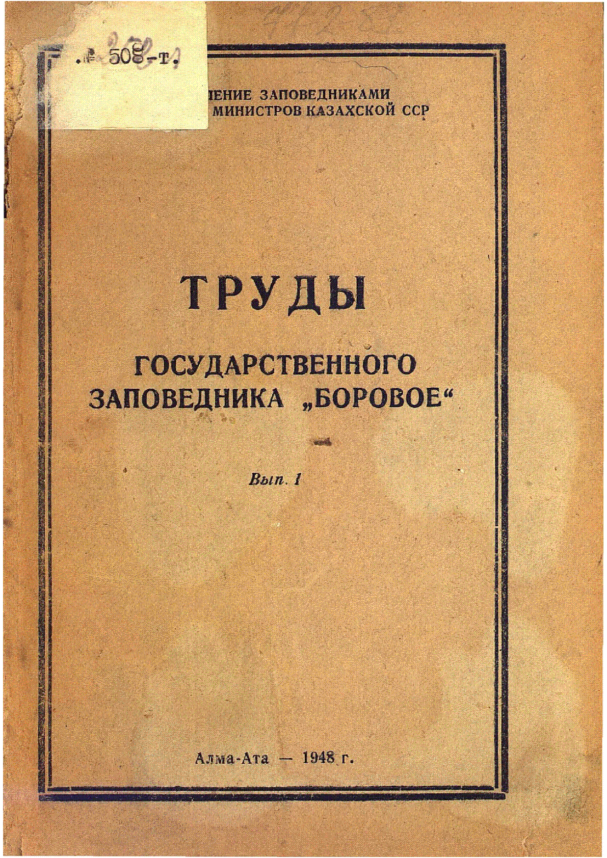Труды государственного заповедника "Боровое" [Текст] ; [отв. ред. А. В. Афанасьев] .- Алма-Ата : [б. и.] , 1948.– 1000 экз. . Библиогр.: с. 78-96 Вып. 1 .– 95, [1] c., к. .