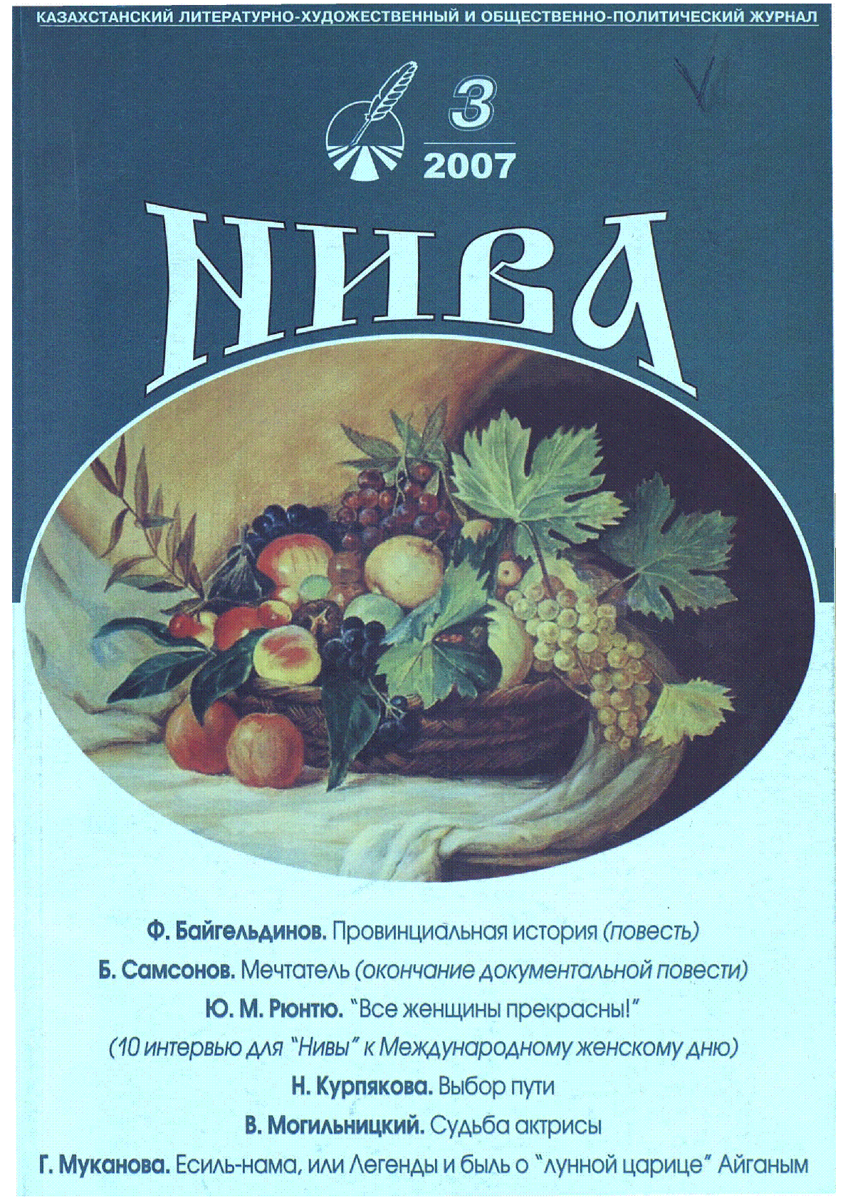 Нива [Text] : казахстанский литературно-художественный и общественно-политический ежемесячный журнал ; [гл. ред. В. Р. Гундарев]. – Астана : [б. и.], 2007. - .– 1000 экз..– 1 раз в месяц. - 1000 экз.
