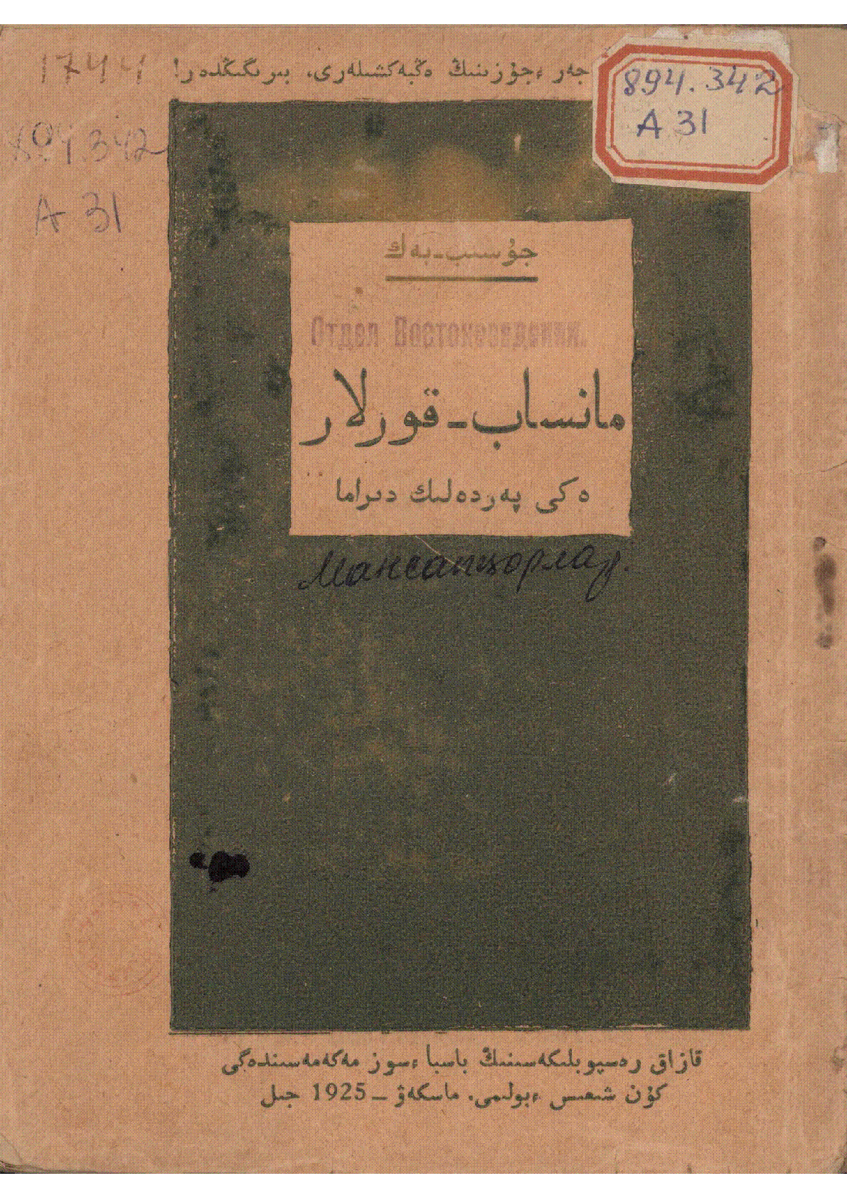 Мансап қорлар = مانساب-قورلار [Мәтін] : Екі перделі драма / Аймауытов ... – Мәскеу : Қазақтың мемлекет баспасы, 1925. - 58 б. - Мәтін араб графикасымен жазылған . . – 3000 дана