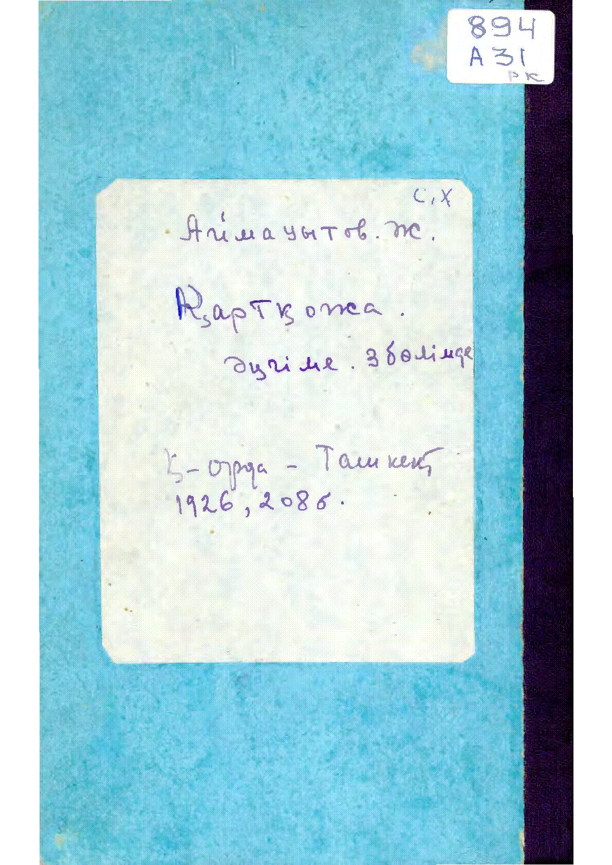 Қартқожа = قارتقوجا [Мәтін] : Үш бөлімді әңгіме / Ж. Аймауытұлы ... – Қызылорда : Қазақ мемлекет баспасы, 1926. - 209 б. - Мәтін араб графикасымен жазылған . . – 5000 дана