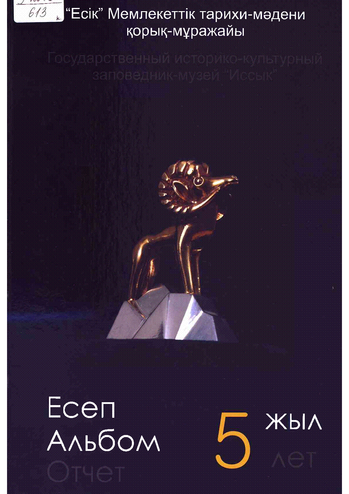 "Есік" Мемлекеттік тарихи-мәдени қорық-мұражайы = Государственный историко-культурный заповедник-музей "Иссык" [Мәтін] / ; [бас ред.: Г. Р. Мұхтарова; жин., өңд. Д. Бектеміров ; орыс тіл. ауд. С. Даутова ] ; ҚР Мәдениет және спорт министрлігі ; "Есік" мем. тарихи-мәдени қорық-мұражайы... – Алматы : [б. ж.], 2015. - 156 б., суретті; - Мұқ. атауы: "Есік" Мемлекеттік тарихи-мәдени қорық-мұражайы. Есеп. Альбом. 5 жыл. - Мәтін қаз., орыс тілд. . . – 500 дана – ISBN 978-601-80516-1-6 (мұқ.) : 40 тг.