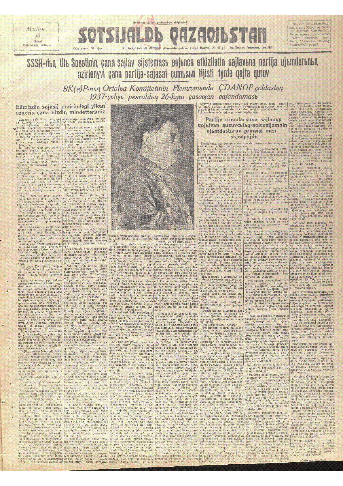Социалды Қазақстан = Sotsijaldь Qazaqьstan : 14 апрель, 1937 ж.. – Алма-Ата : газетная типография Казместпрома, 1937. - .– [т.ж.]. № 85 (4389). - [т.ж.]