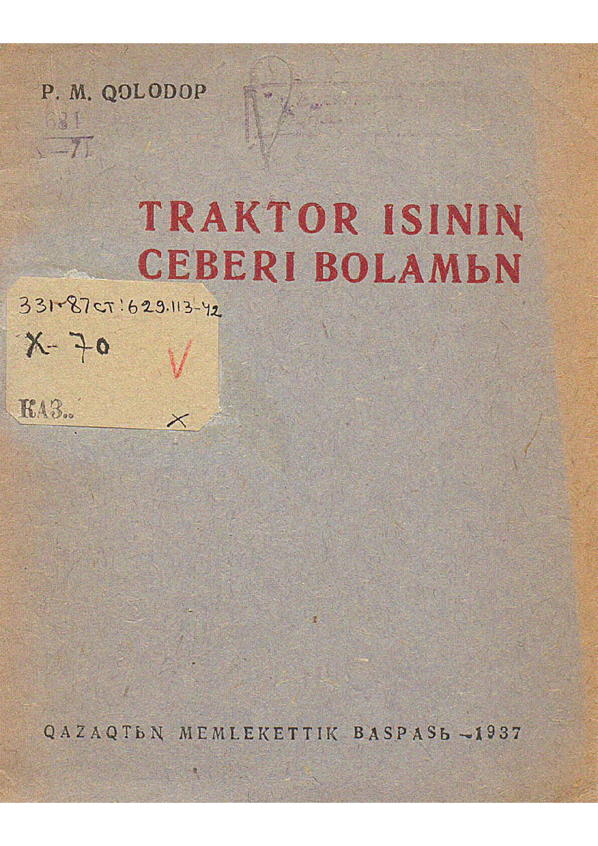Трактор ісінің шебері боламын [Text] / Холодов П.М. ... – Қызылорда : Қазақ мемлекеттік баспасы, 1937. - 27 бет - Латын графикасымен. . . – 2150 дана