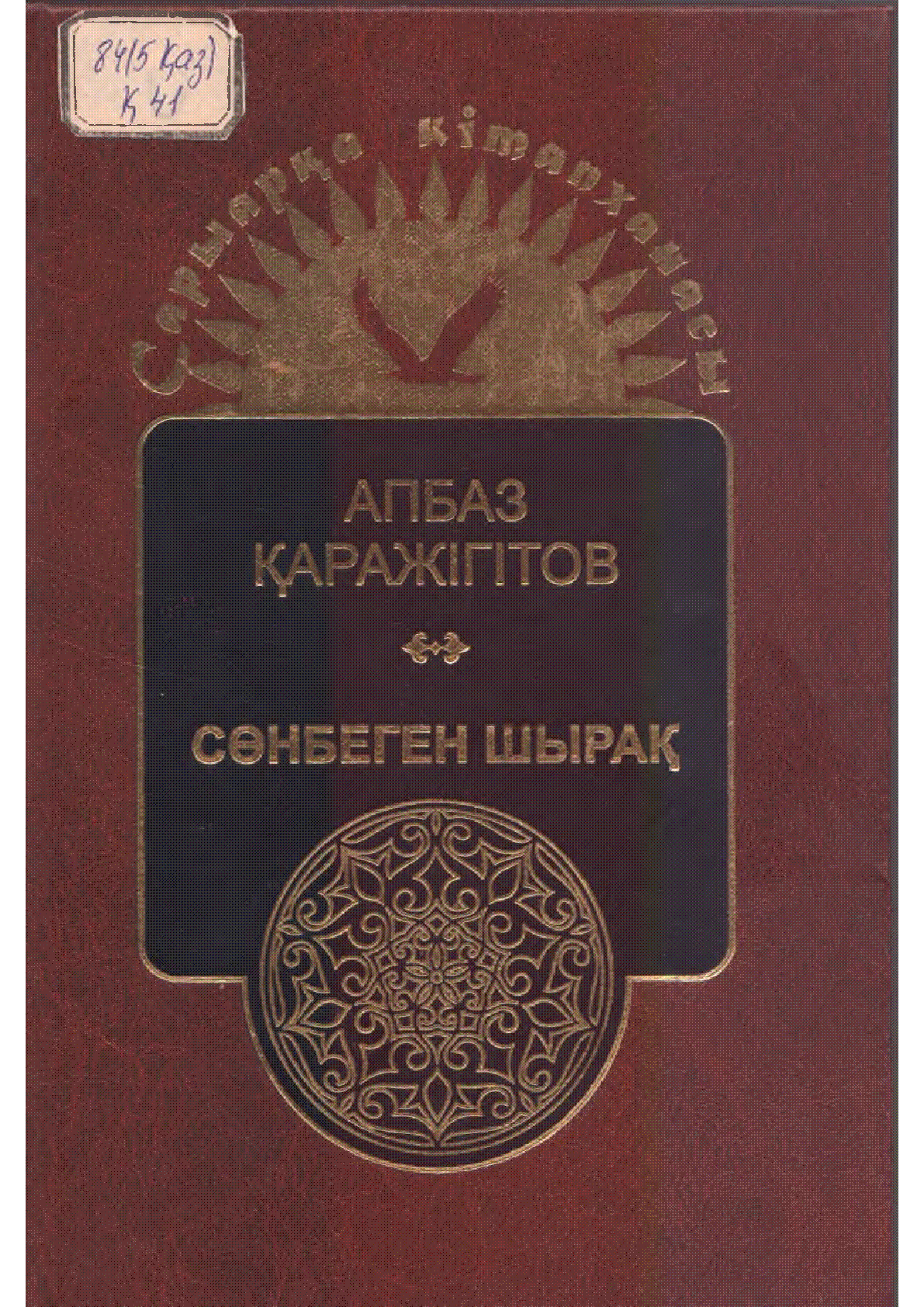 Сөнбеген шырақ [Мәтін] : әңгімелер мен повестер / А. Қаражігітов ; Қарағанды обл. әкімдігі... – Астана : Фолиант, 2014. - 309, [1] б., портр.;– (Сарыарқа кітапханасы. / жауап. ред. Қ. Құрмансейіт . . – 800 дана – ISBN 978-601-292-876-1 (мұқ.) : 50 тг.