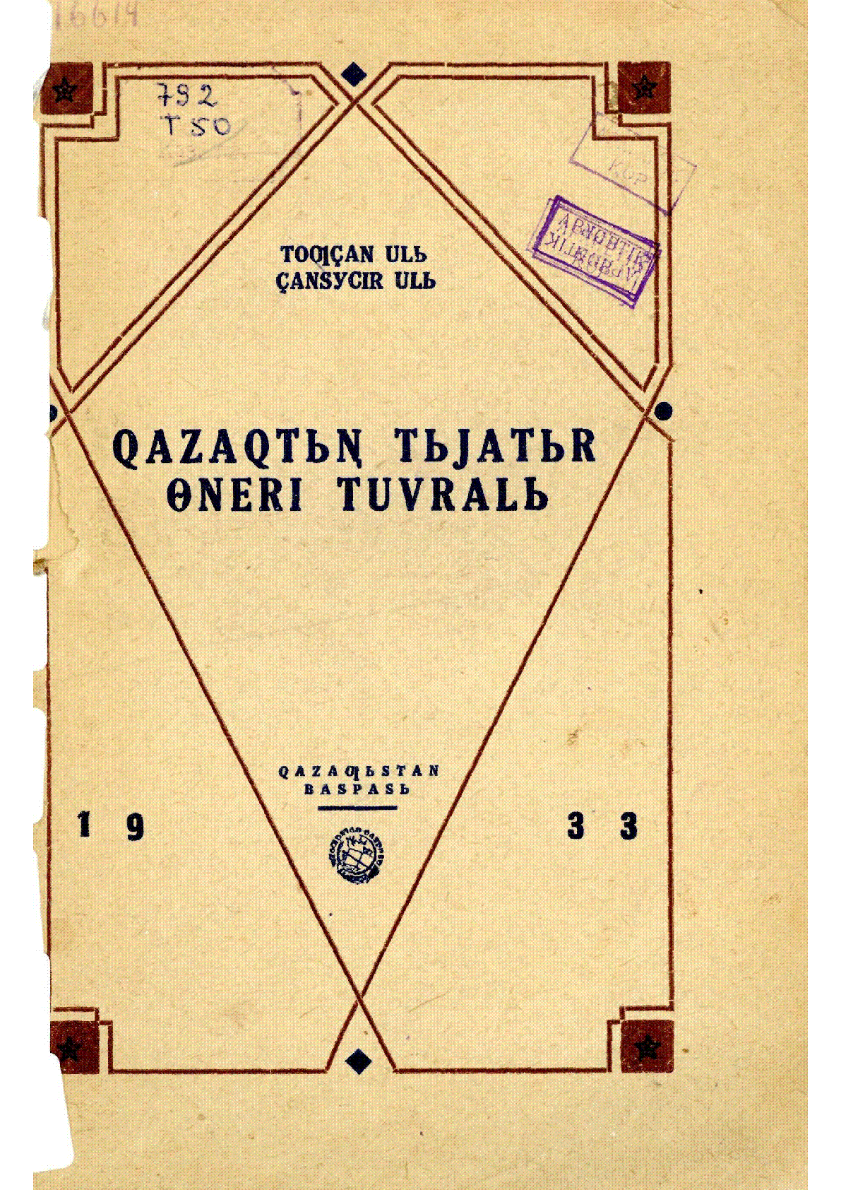 Қазақтың театр өнері туралы [Text] / Тоғжанұлы Ғ. Жансүгірұлы І. ... – Қызыл-Орда : Қазақстан баспасы, 1933. - 84 бет - Латын графикасымен. . . – 2000 дана