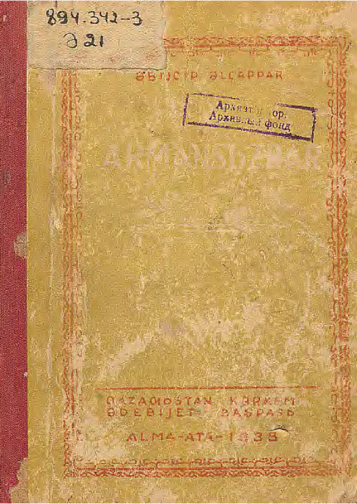 Армансыздар [Мәтін] / Ә. Әбішев ... – Алма-Ата : Қазақстан көркем әдебиет баспасы, 1938. - 180, [1] б. - Мәтін латын қарпімен қазақ тілінде . . – 10150 дана (мұқ.) : 10 тг.