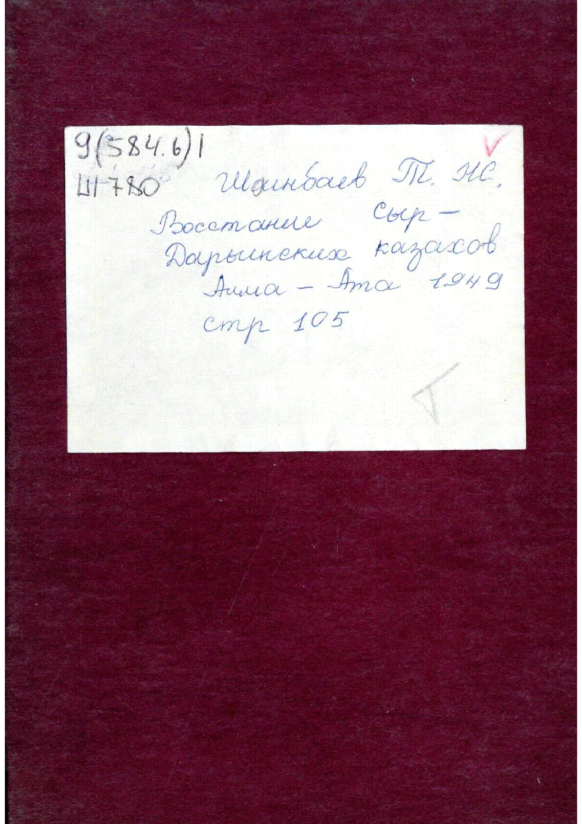 Восстание Сыр-Дарьинских казахов под руководством батыра Джанхожи Нурмухамедова (1856-1857 гг.) [Текст] / Т. Ж. Шоинбаев ; под ред. Н. М. Дружинина ; АН КазССР... – Алма-Ата : Изд-во АН КазССР, 1949. - 106 с., ил.; . – Библиогр. в подстроч. примеч. . – 1000 экз. : 40 тг.