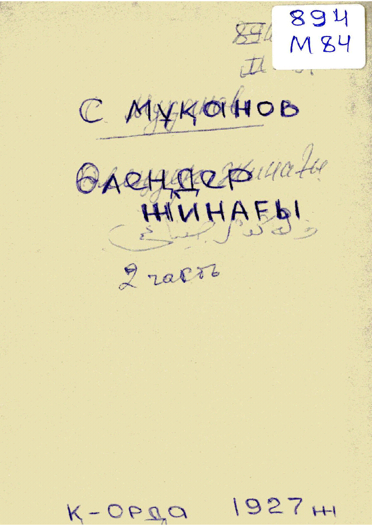 Өлеңдер жинағы = وله ݣده ر جىيناعى [Мәтін] / С. Мұқанов . – І-ІІІ рет бас. .. – Қызылорда : Қазақ мемлекет баспасы, 1927. - 222 б. - Мәтін араб графикасымен жазылған . . – 3000 дана