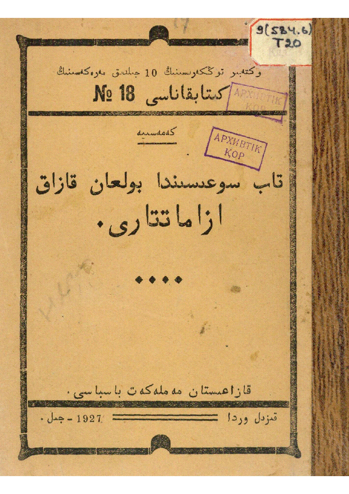 Тап соғысында болған қазақ азаматтары = تاب سوعىسىندا بولعان قازاق ازاماتتارى [Мәтін] / ... – Қызылорда : Қазақстан мемлекет баспасы, 1927. - 17 б. - Мәтін араб графикасымен жазылған . . – 2000 дана