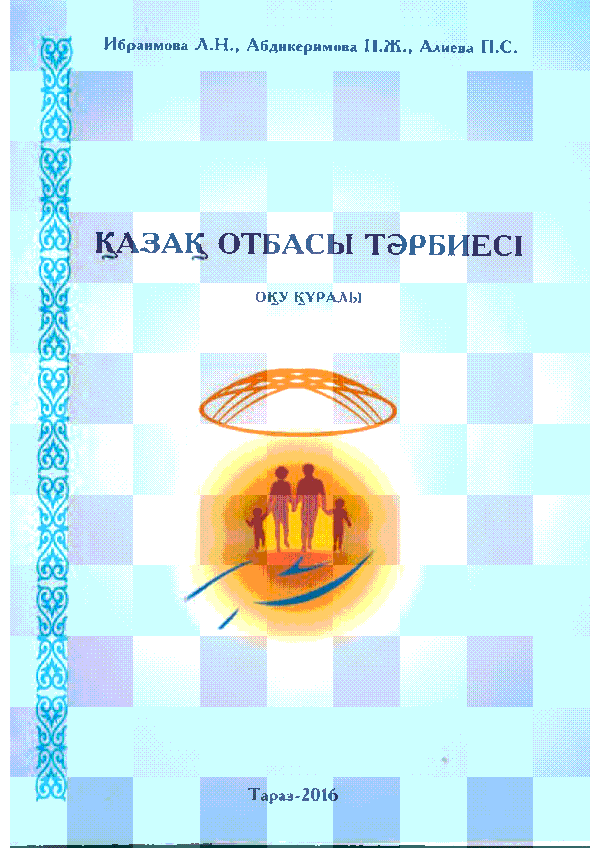 Қазақ отбасы тәрбиесі [Мәтін] : оқу құралы / Л. Н. Ибраимова П. Ж. Абдикеримова П. С. Алиева ; ҚР білім және ғылым министрлігі, Тараз мемлекеттік педагогикалық институты... – Тараз : [б. ж.], 2016. - 164 б. . – Библиогр.: 134-136 б. . – 100 дана – 978-9965-37-360-2