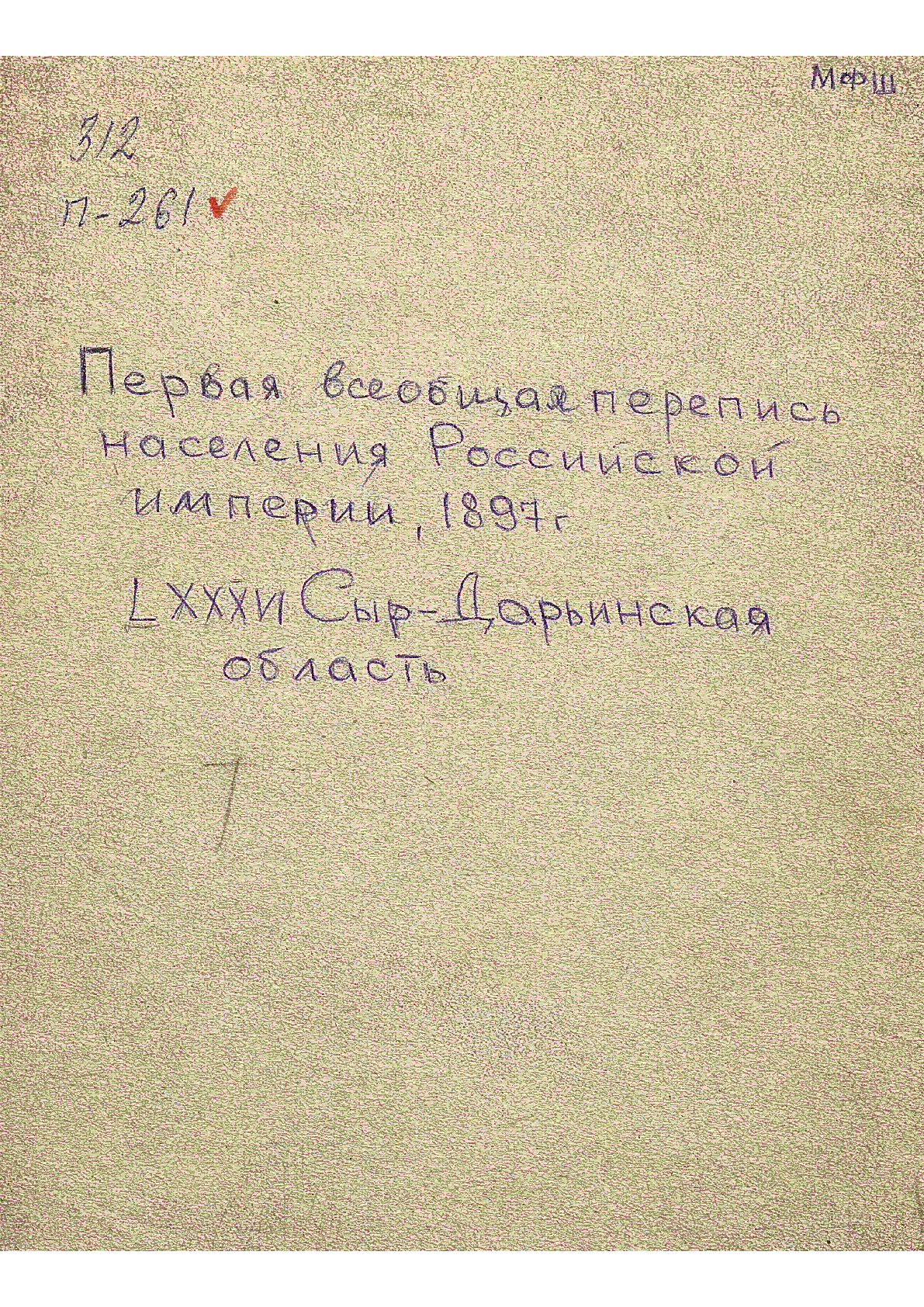 Первая всеобщая перепись населения Российской империи, 1897 г. [Текст] / ... – СПб. : Типография Т-ва "Народная Польза", 1905. - 208 с. ; Т. 86 : Сыр-Дарьинская область). . . – б.т.