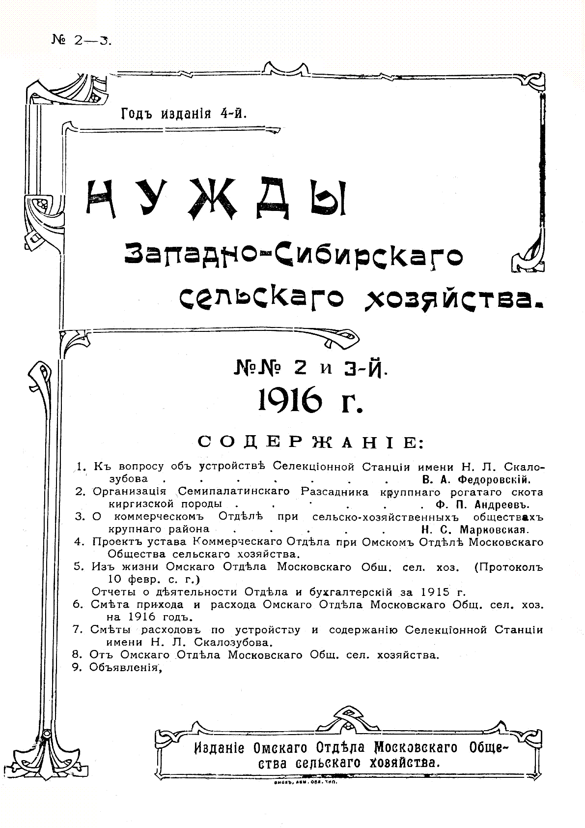 Нужды Западно-Сибирского сельского хозяйства [Текст]. – Омск : Изд. Омск. отд. Московск. О-ва сельск. хоз-ва, 1916. -