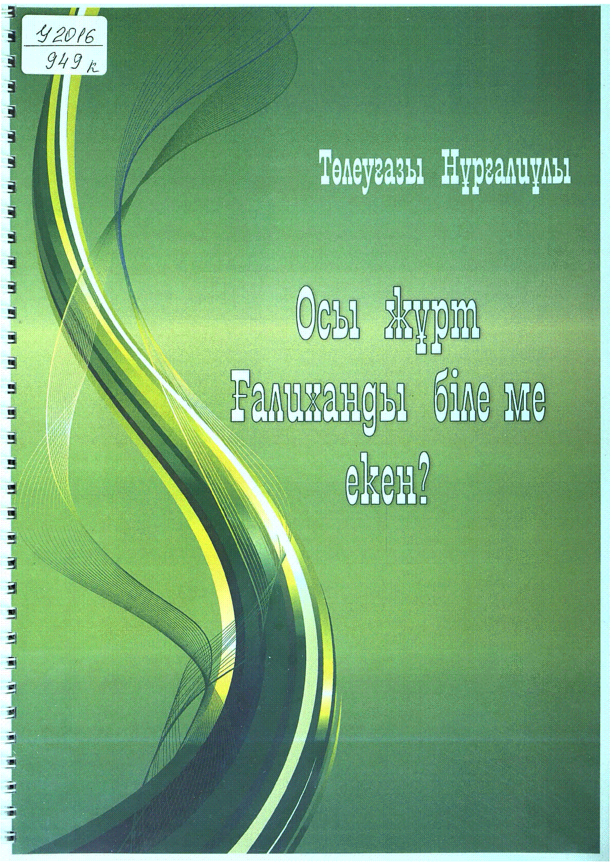 Осы жұрт Ғалиханды біле ме екен? [Мәтін] / Т. Нұрғалиев ... – [б. о. ж.] : [б. ж.], [201?]. - 27 б. - Автор қолтаңбасымен ; мәтіні қазақ, орыс және ағылшын тілд. . . – [т. ж.] : 40 тг.