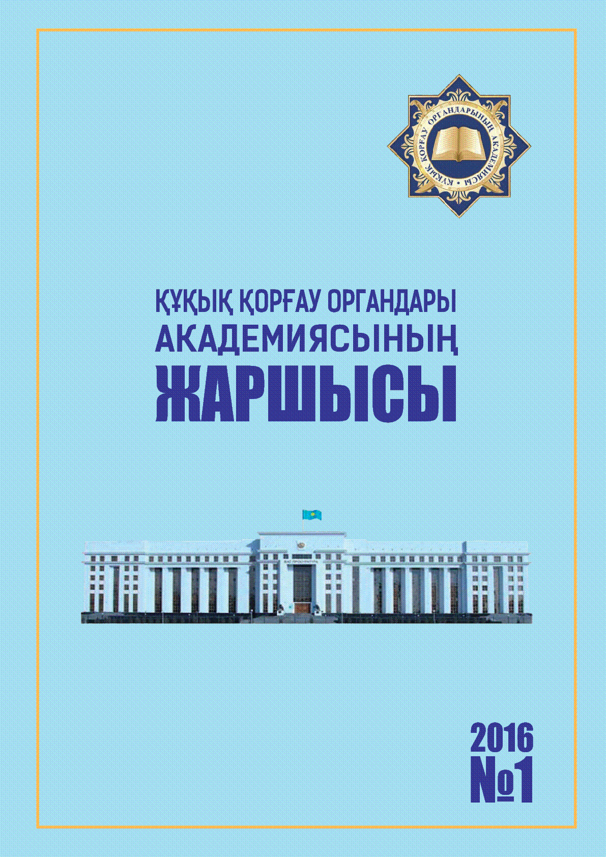 Құқық қорғау органдары академиясының жаршысы = Вестник Академии правоохранительных органов = The Bulletin of Academy of Law Enforcement Agencies [Мәтін] : ғылыми журнал ; [бас ред.: Ұ. С. Байжанов ; Құқық қорғау органдары акад.]. – Нұр-Сұлтан : Құқық қорғау органдары академиясы, 2016. - .– 300 дана.– Тоқсан сайын шығарылады. № 1, 2016. - 300 дана