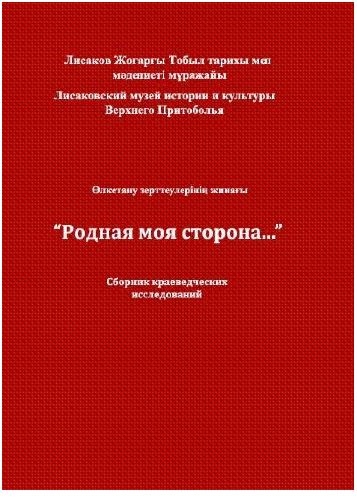Родная моя сторона... [Текст] : сборник краеведческих исследований : өлкетану зерттеулерінің жинағы / ; [ред.кол.: Ю. П. Буданова (сост.), М. А. Алексеенко, Б. Ж. Абуова] ; КГУ «Лисаковский музей истории и культуры Верхнего Притоболья» Управления культуры акимата Костанайской области... – Лисаковск : [б. и.], 2014. - 161 c., - 161 c., [3] п. ил.; - Текст на каз., рус. . . – [б. т.] – 978-601-80398-2-9 (в пер.) : 10 тг.